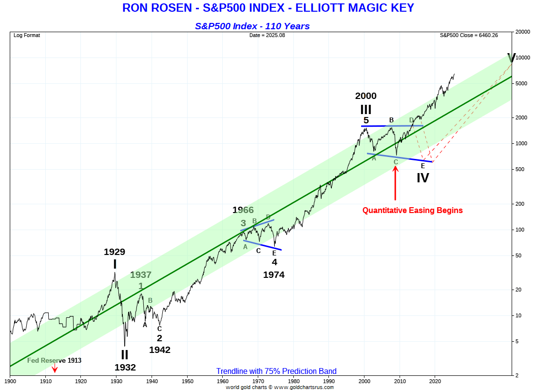 The 1966 to 1974 megaphone pattern for the S&P500 had a rising upper trend line.