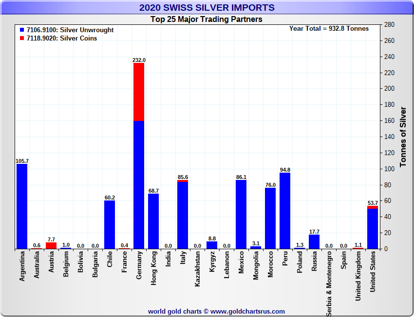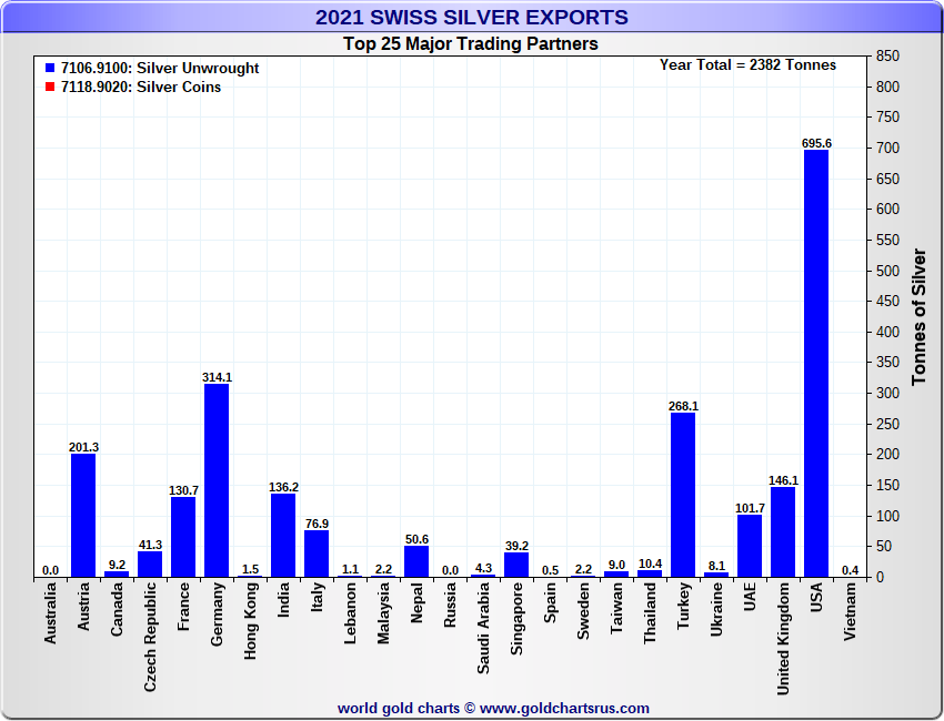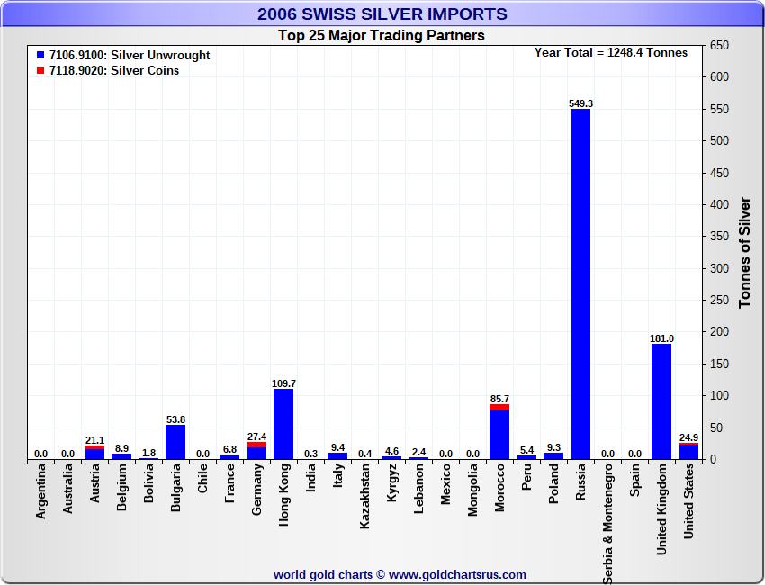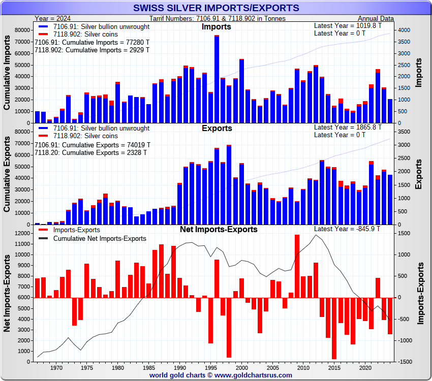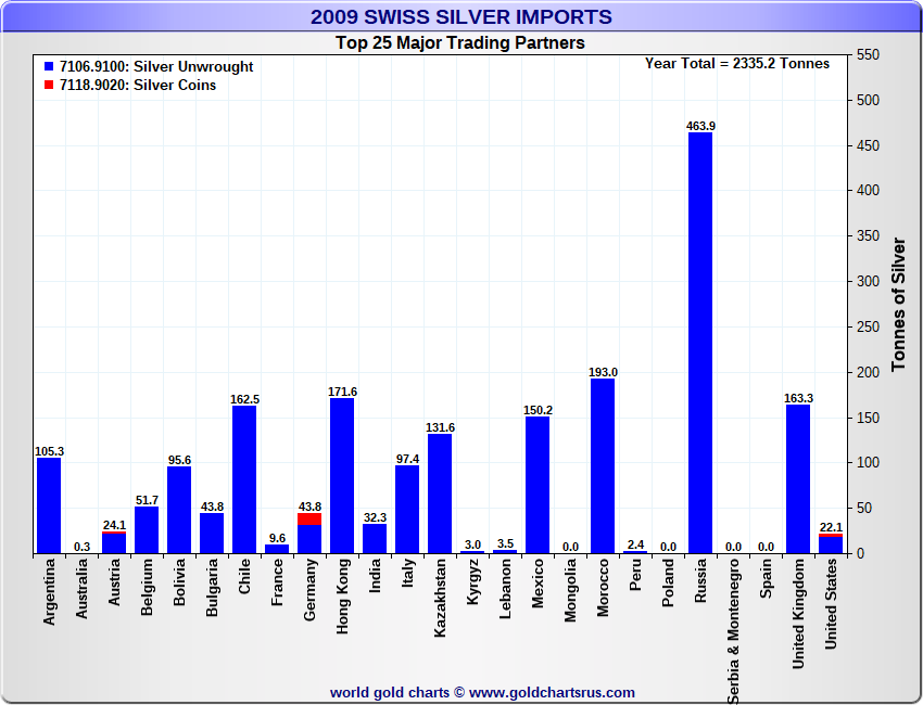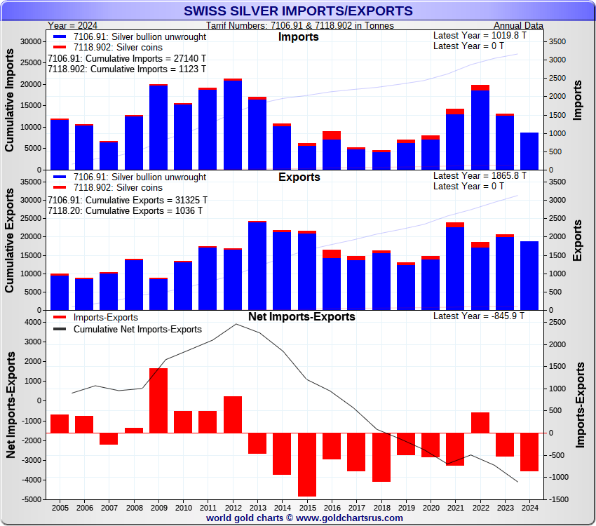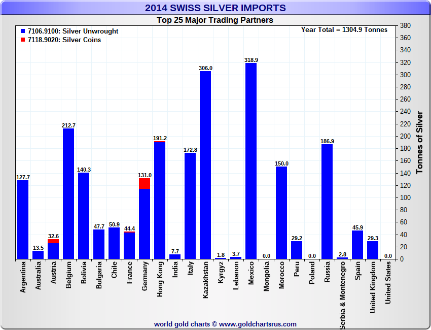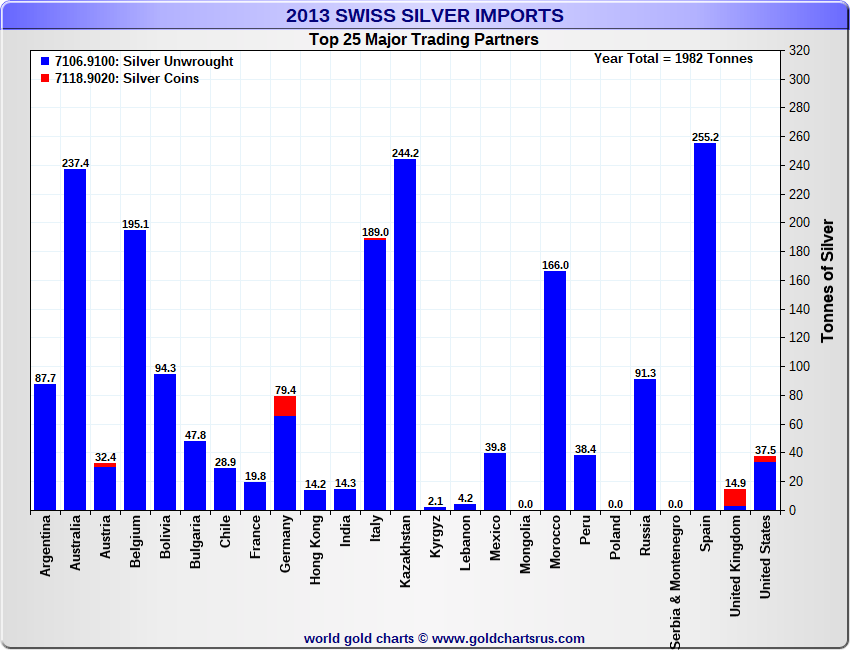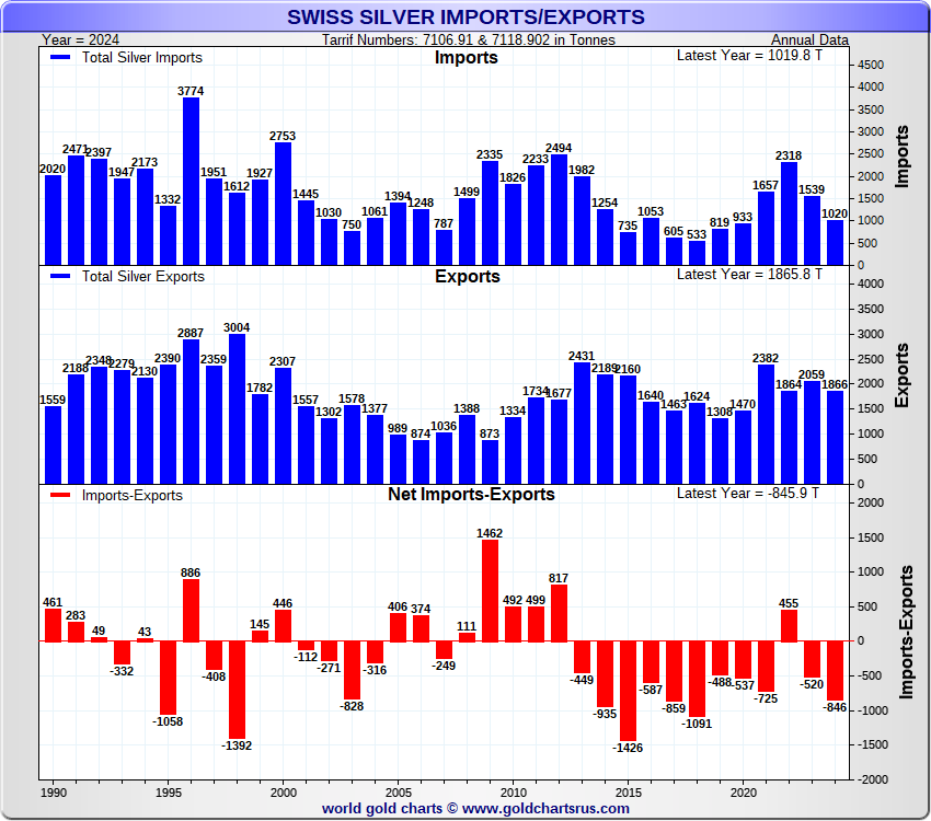 Tonnages are derived from CHF values divided by the CHF silver price. Source: Swiss Data |