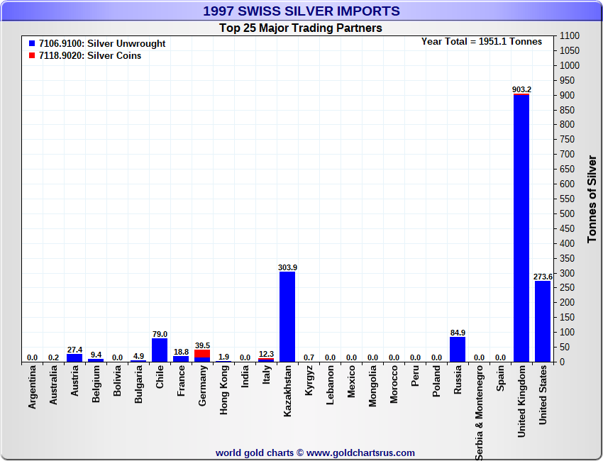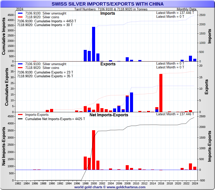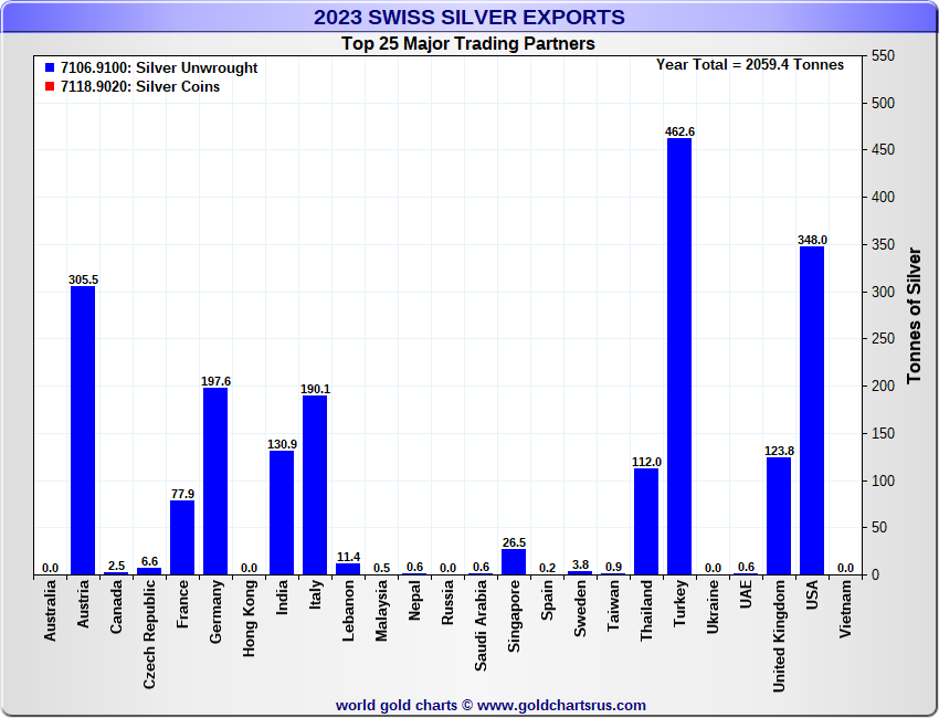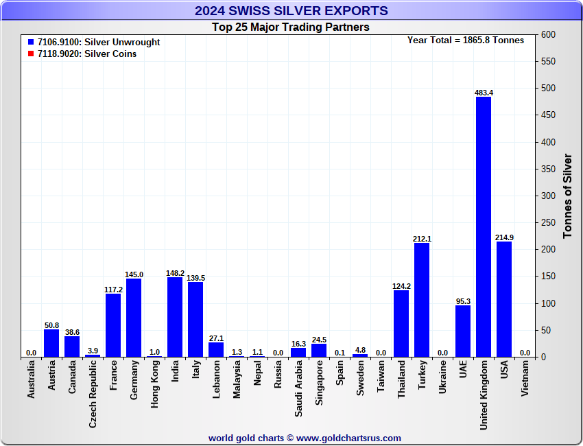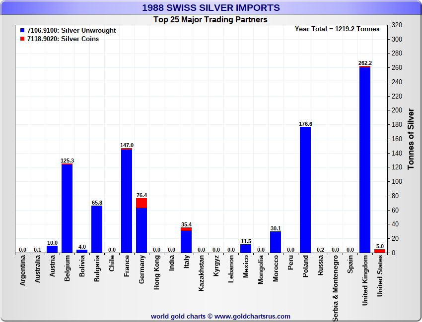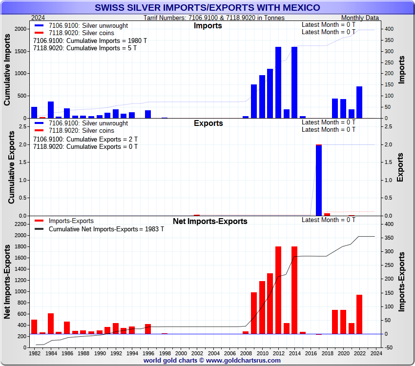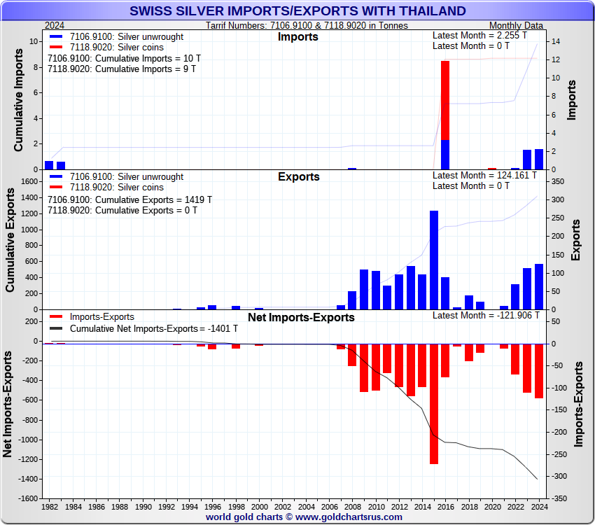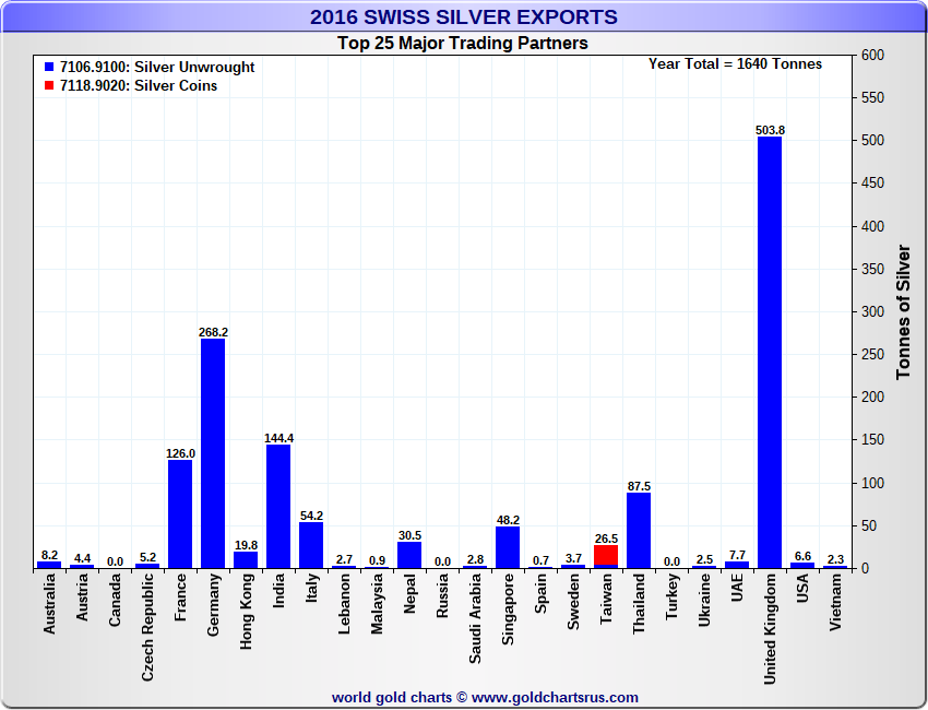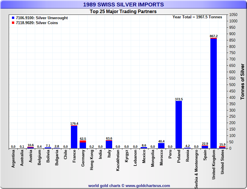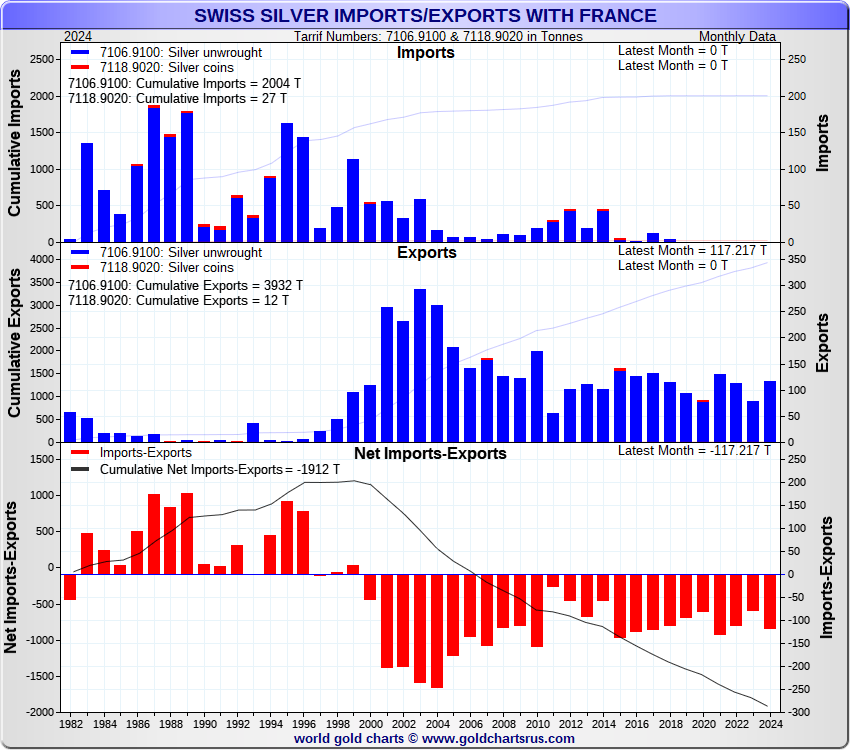 Tonnages are derived from CHF values divided by the CHF silver price. Source: Swiss Data |