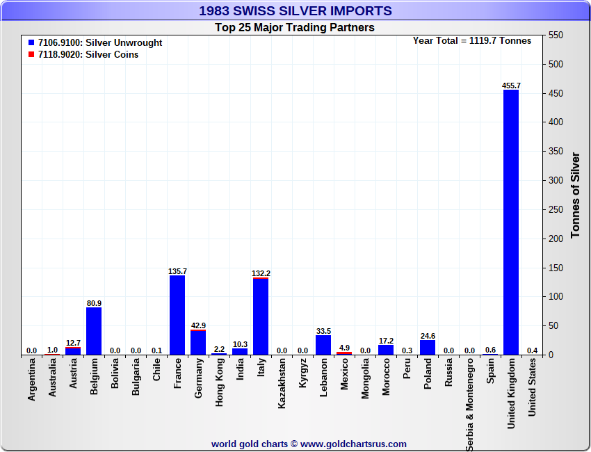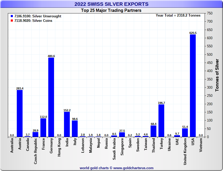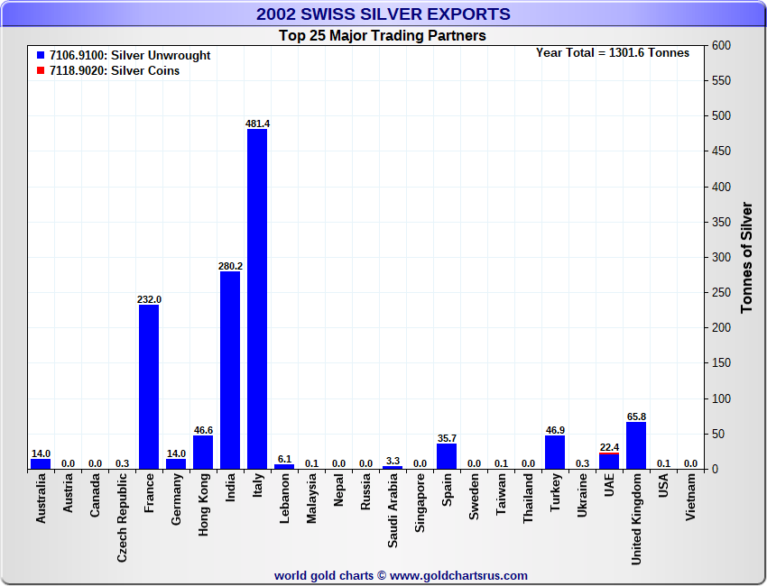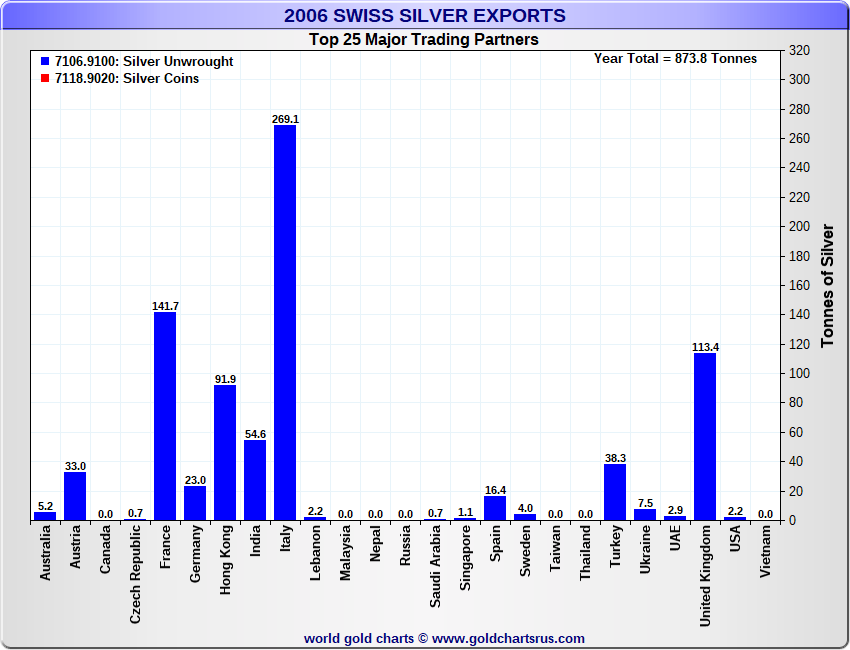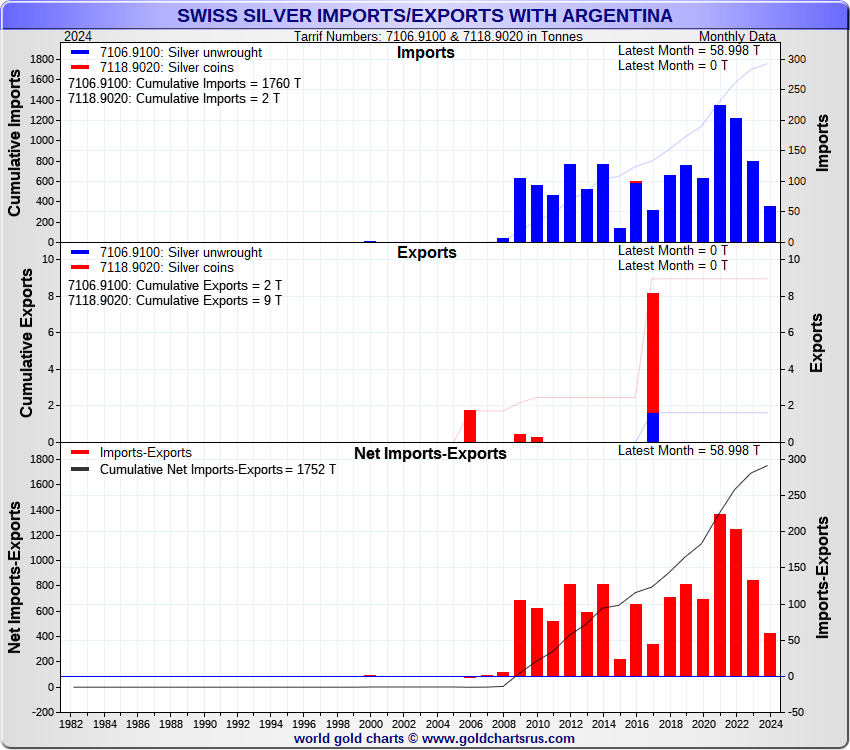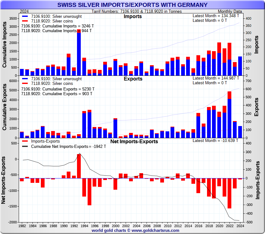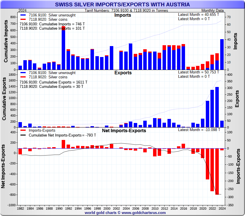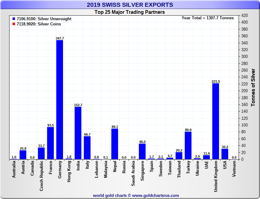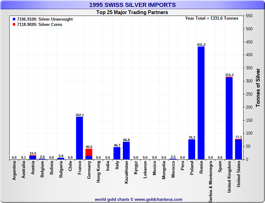 Tonnages are derived from CHF values divided by the CHF silver price. Source: Swiss Data |