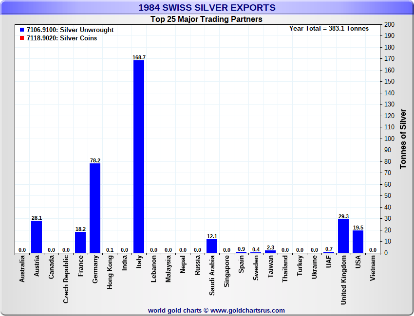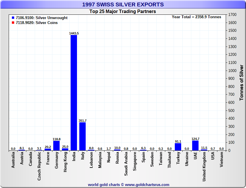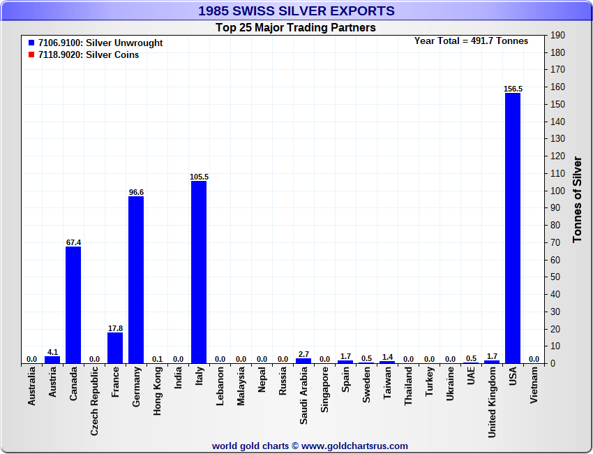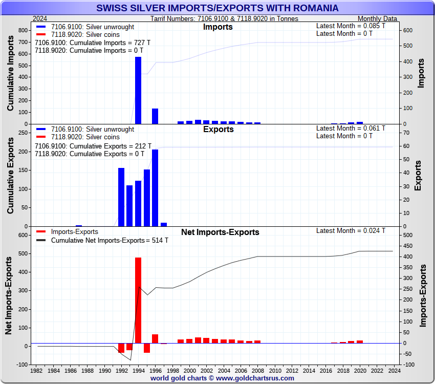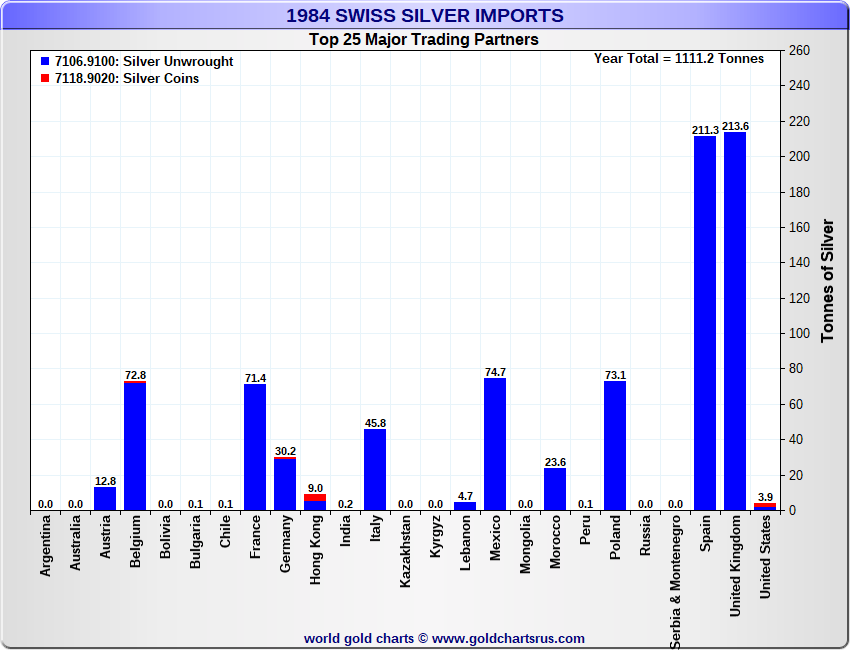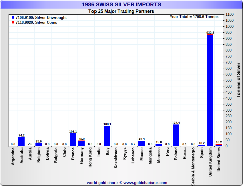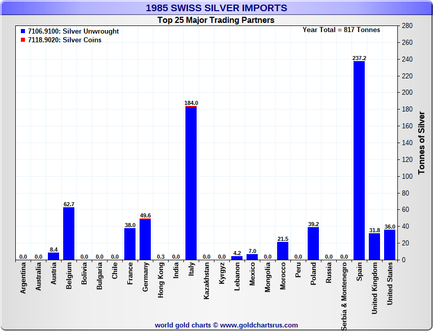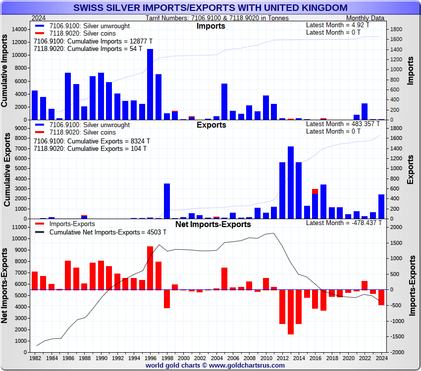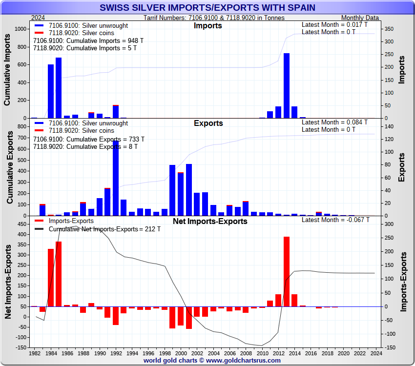 Tonnages are derived from CHF values divided by the CHF silver price. Source: Swiss Data |