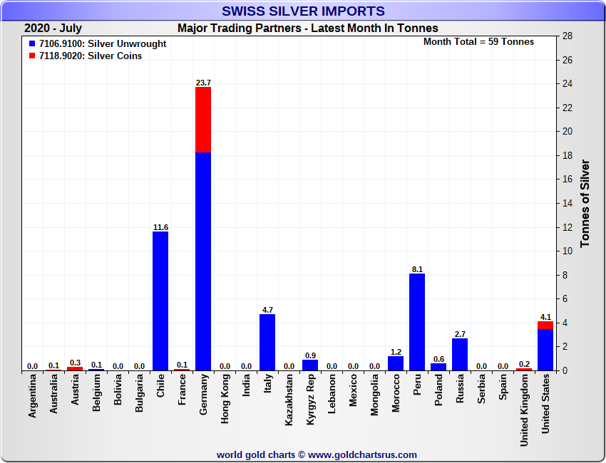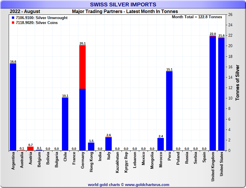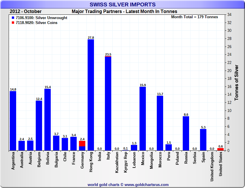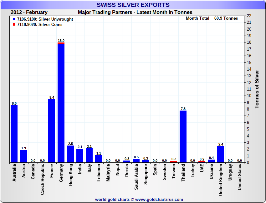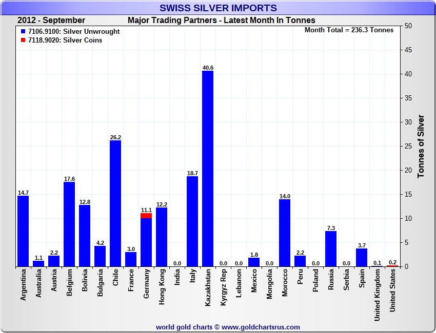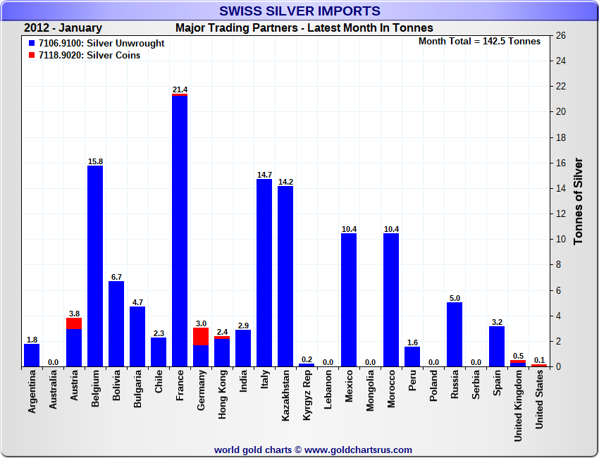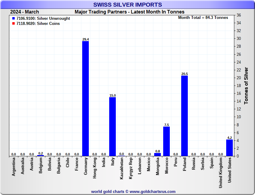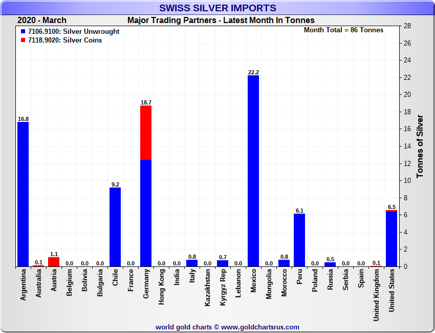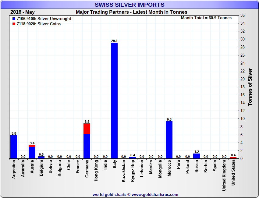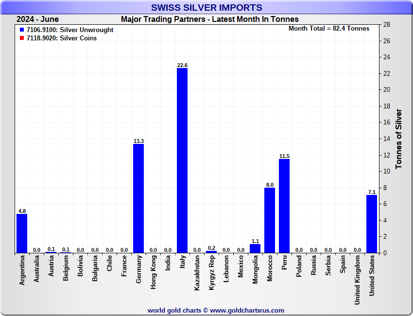 Tonnages are derived from CHF values divided by the CHF silver price. Source: Swiss Data |