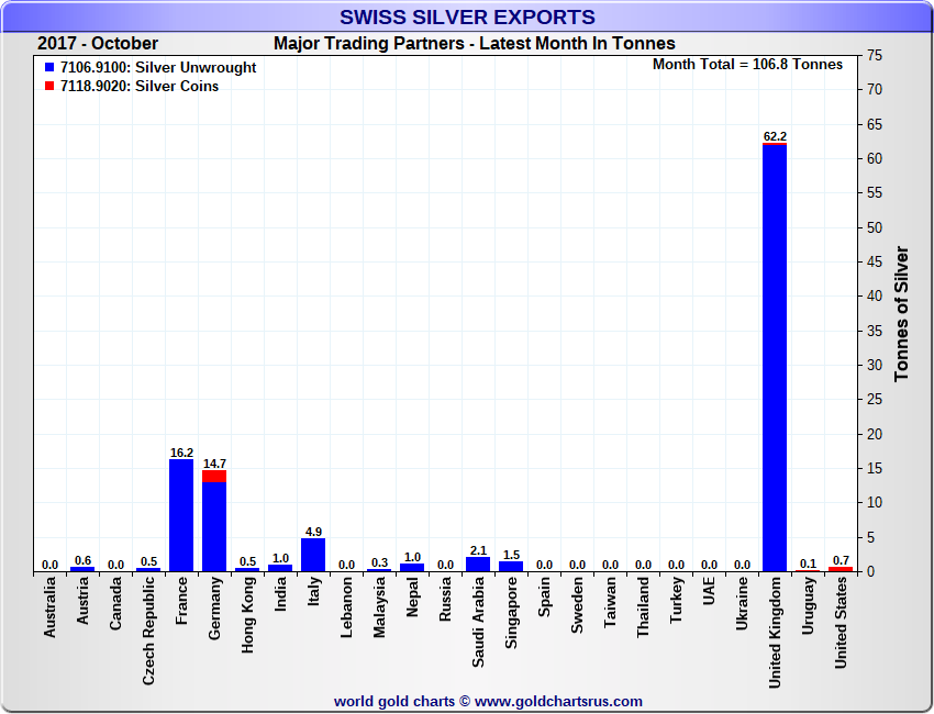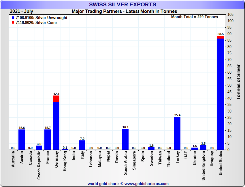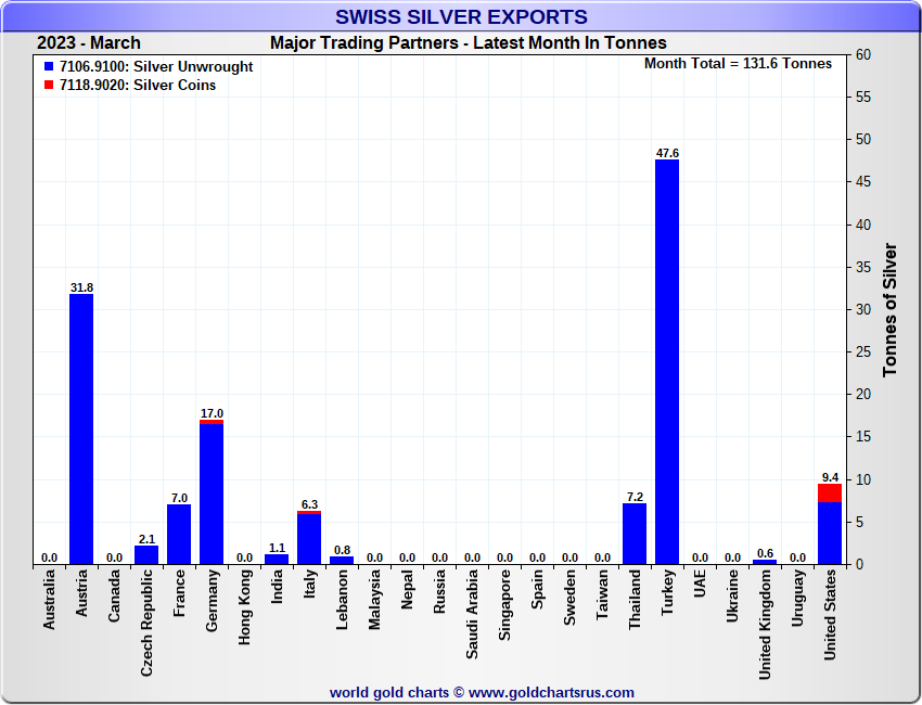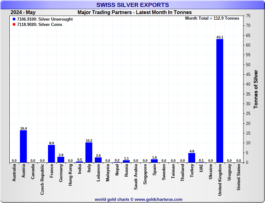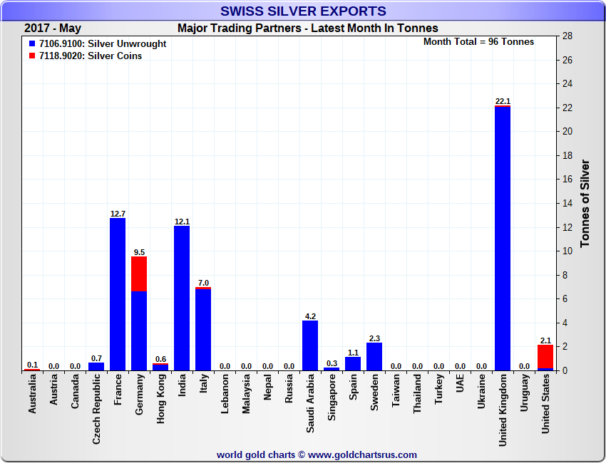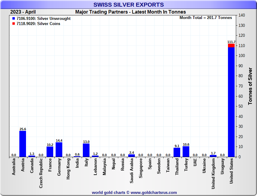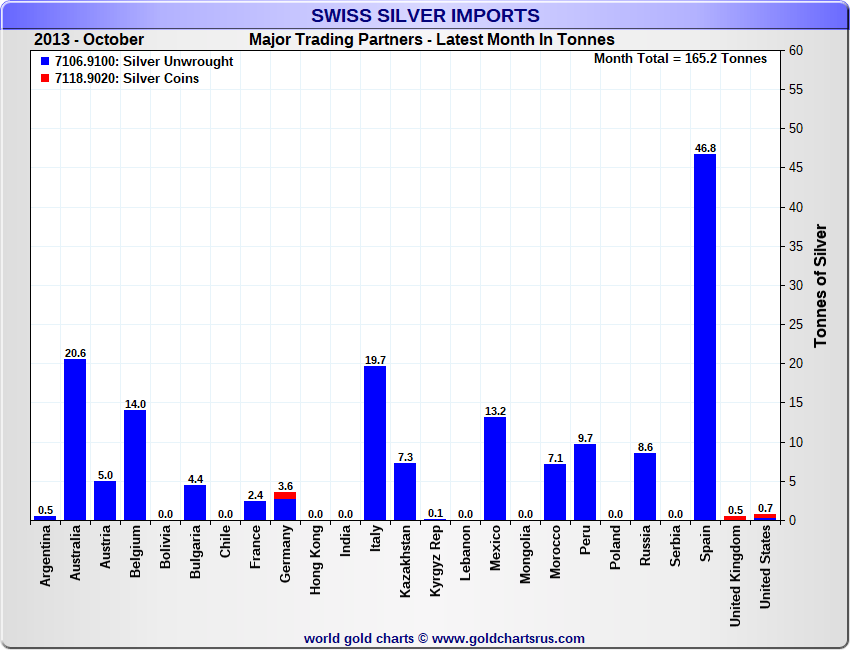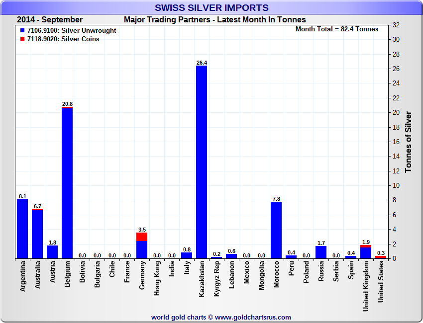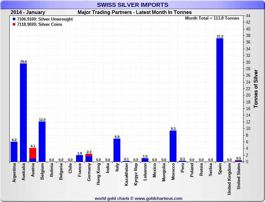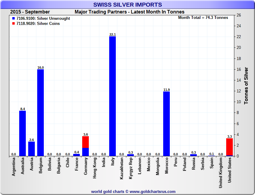 Tonnages are derived from CHF values divided by the CHF silver price. Source: Swiss Data |