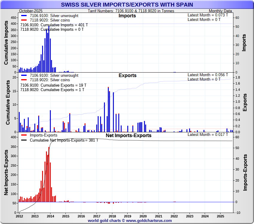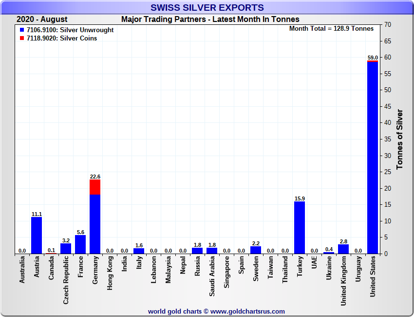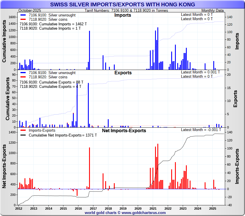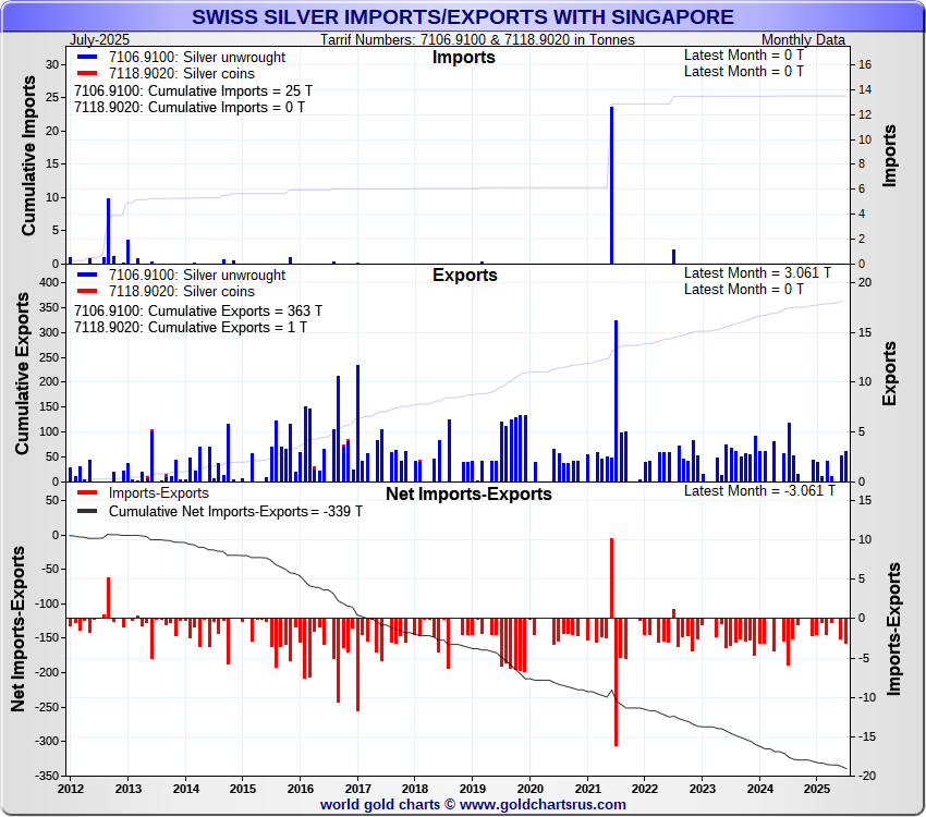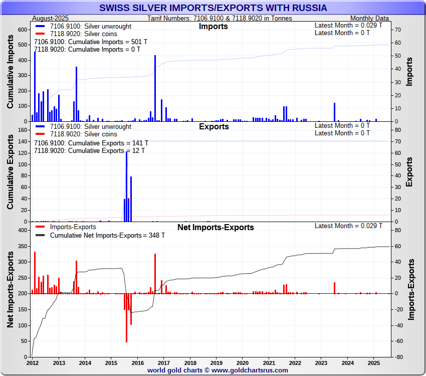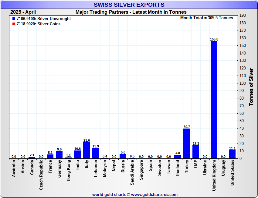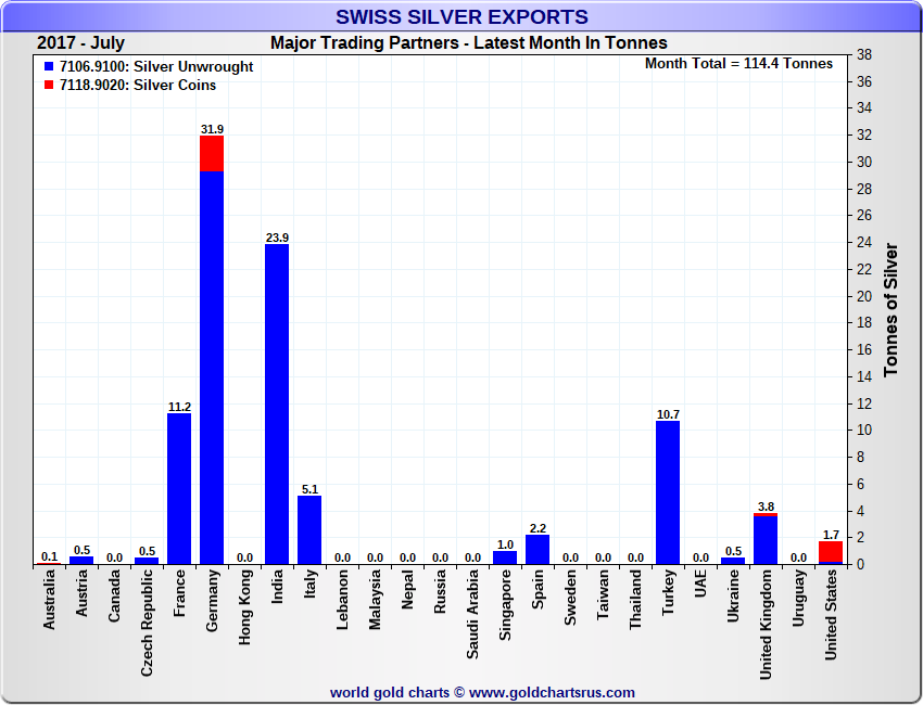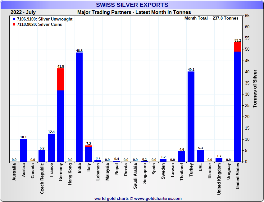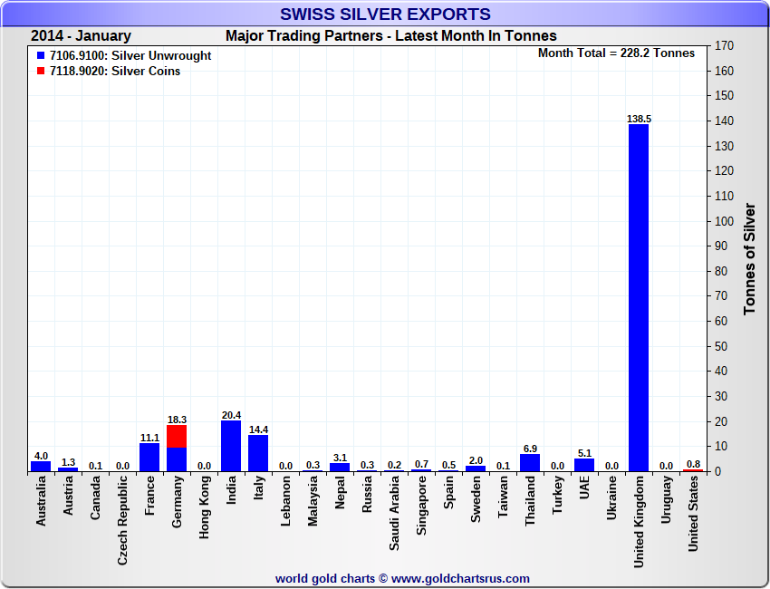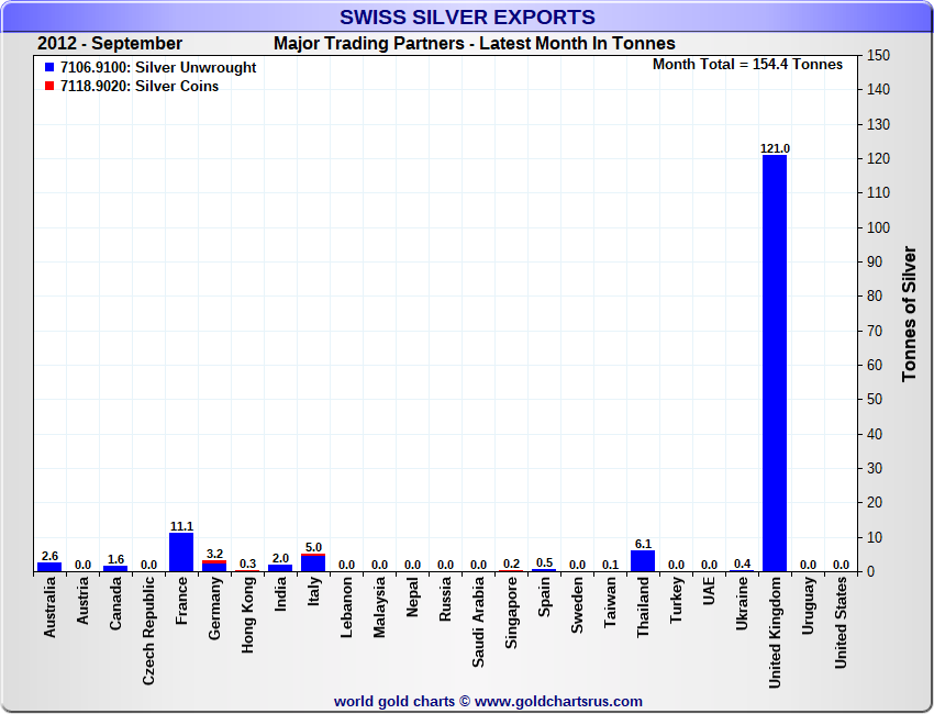 Tonnages are derived from CHF values divided by the CHF silver price. Source: Swiss Data |