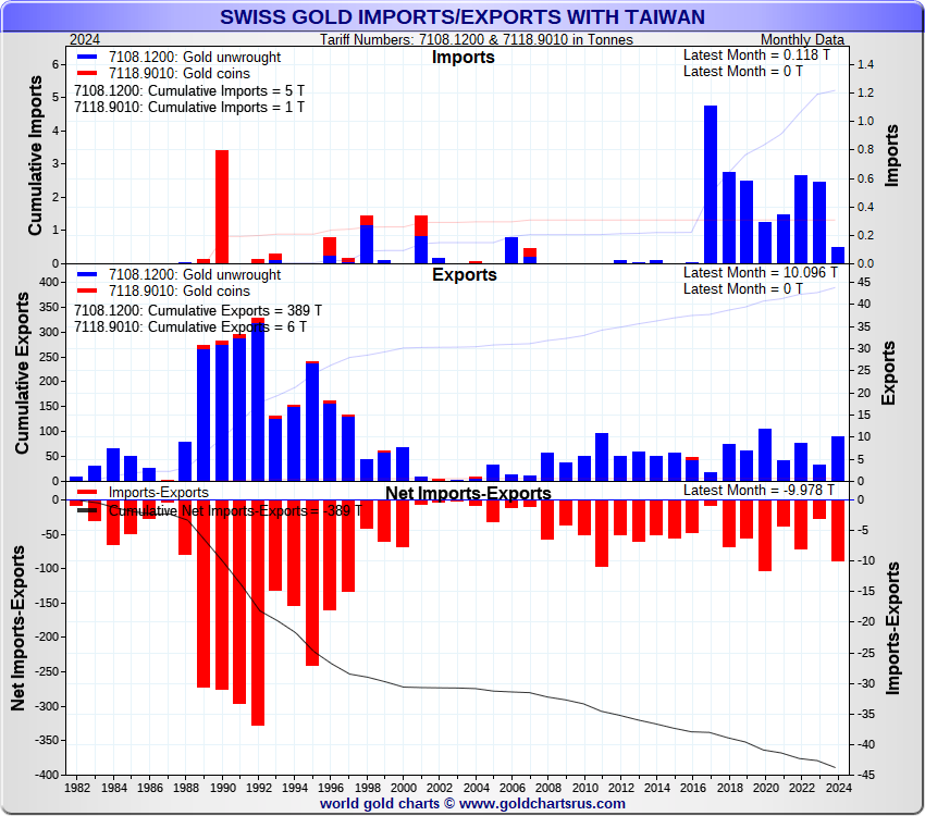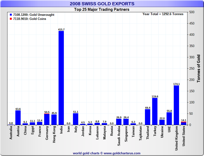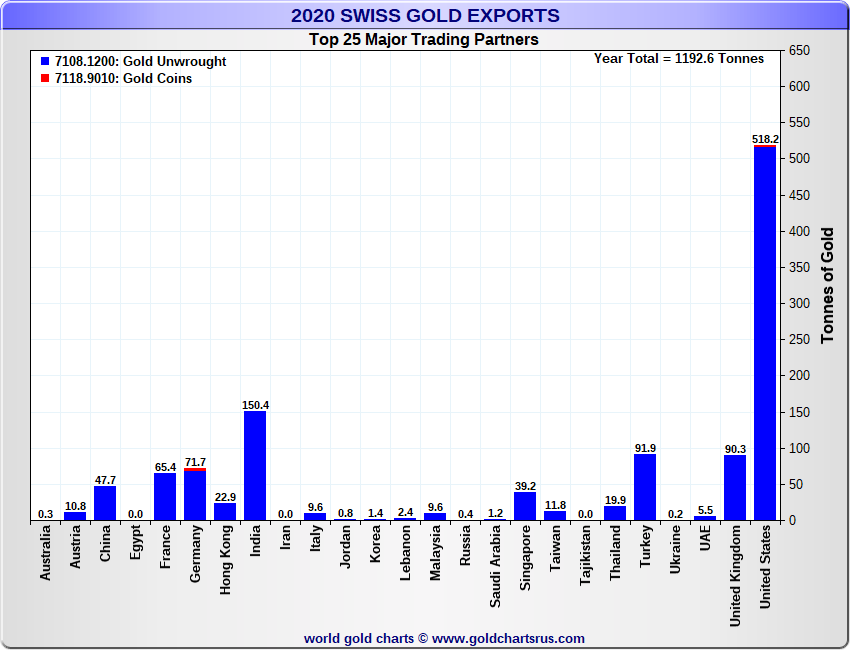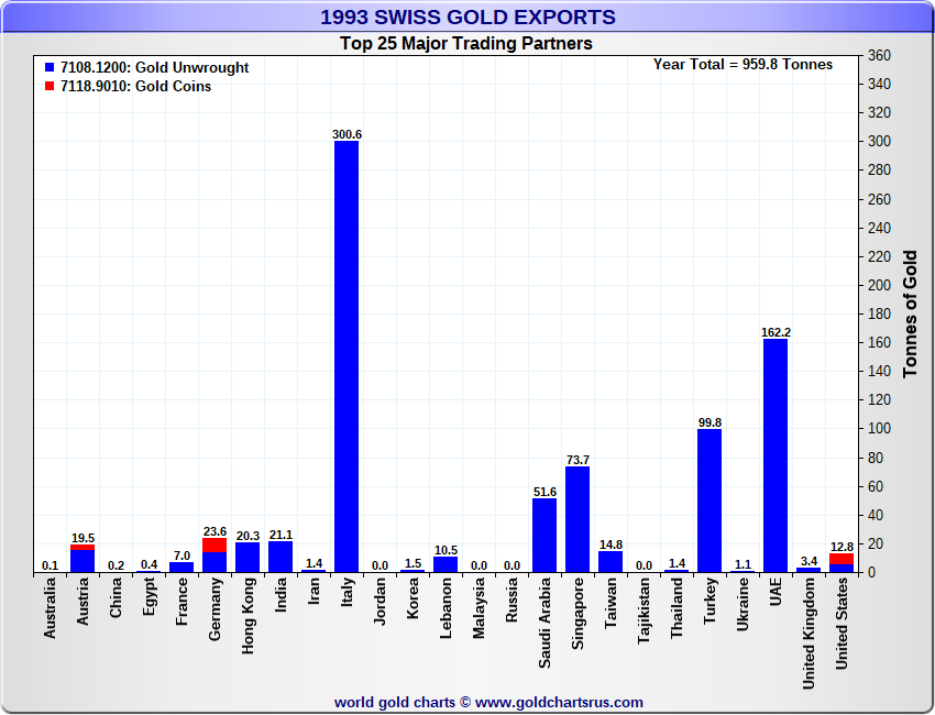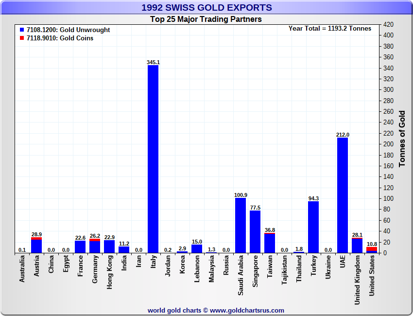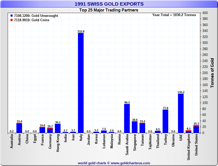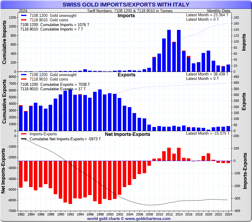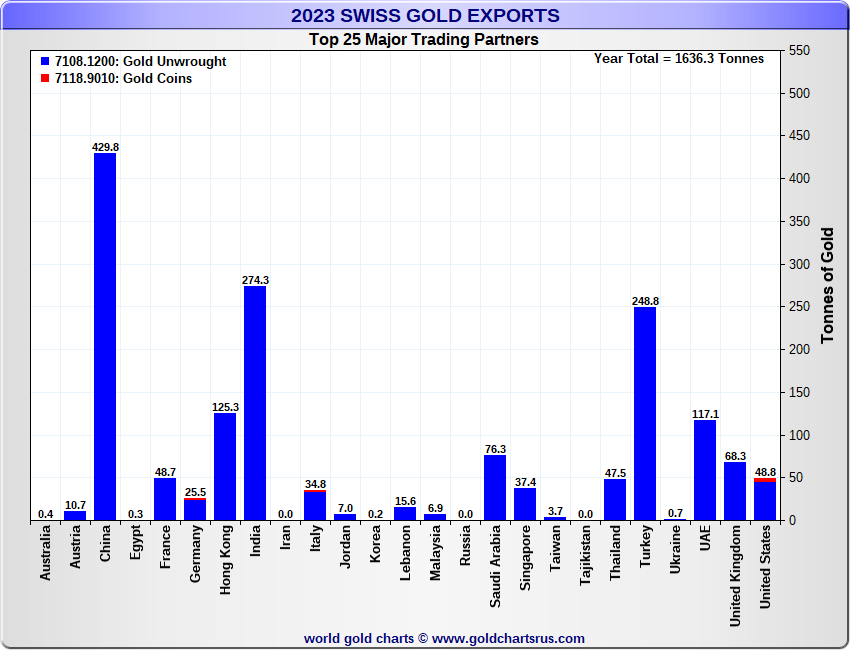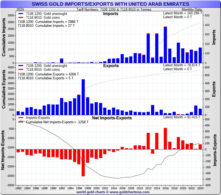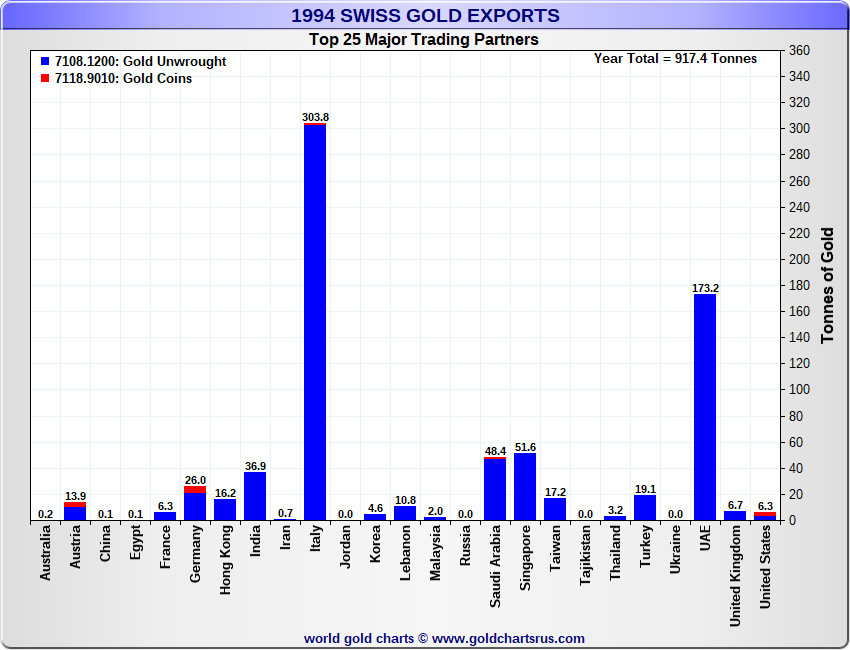 Tonnages are derived from CHF values divided by the CHF gold price. Source: Swiss Data |