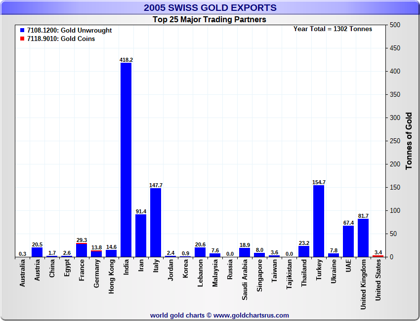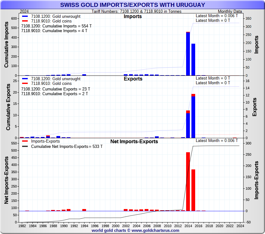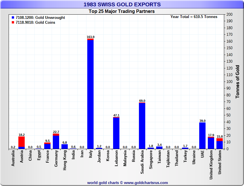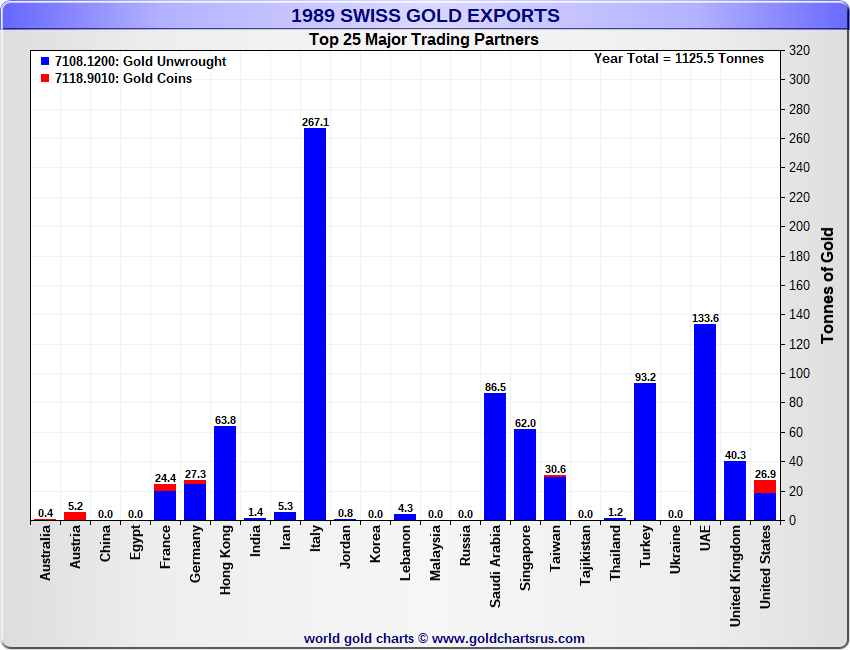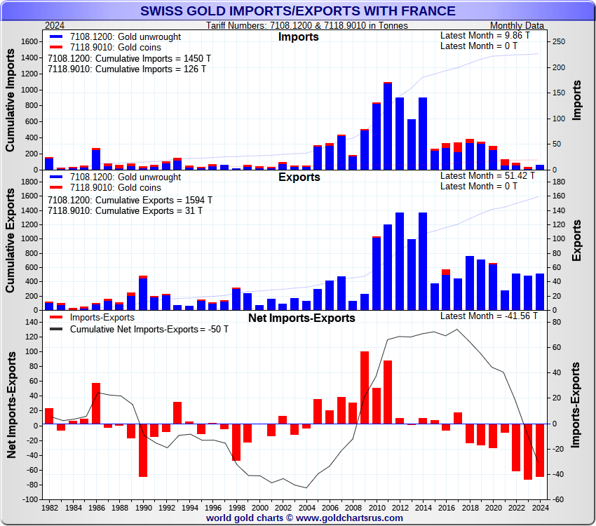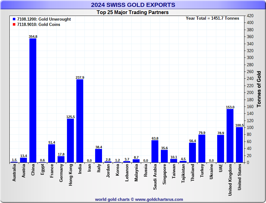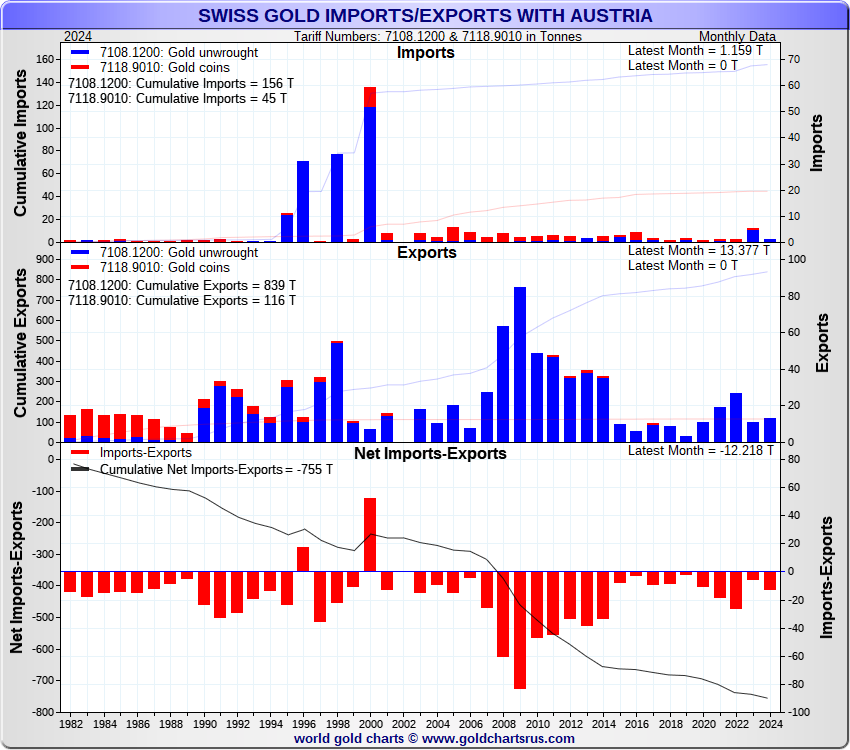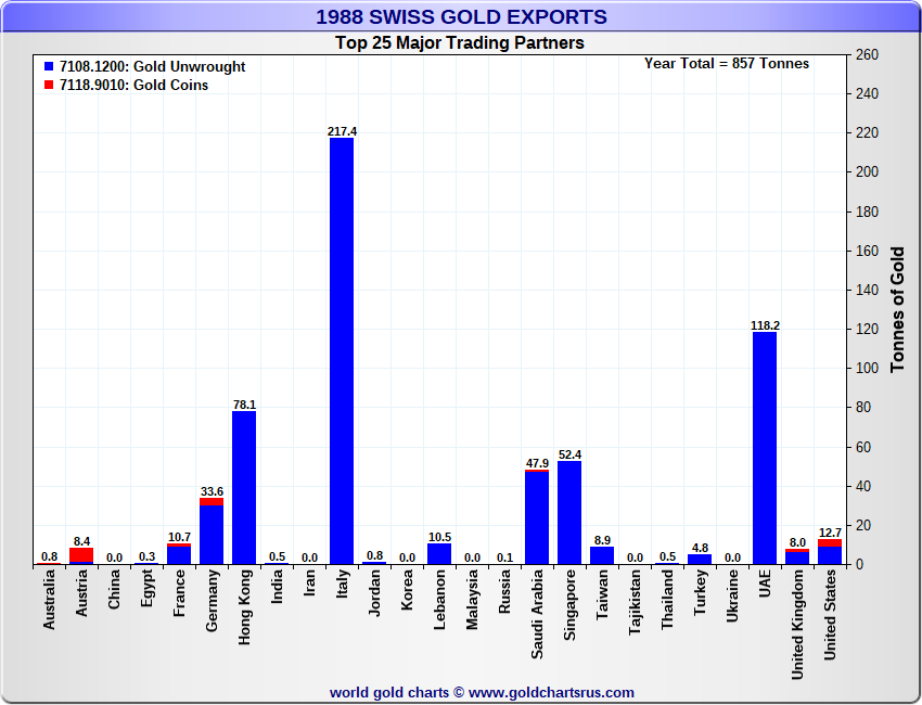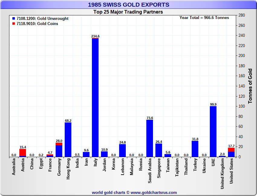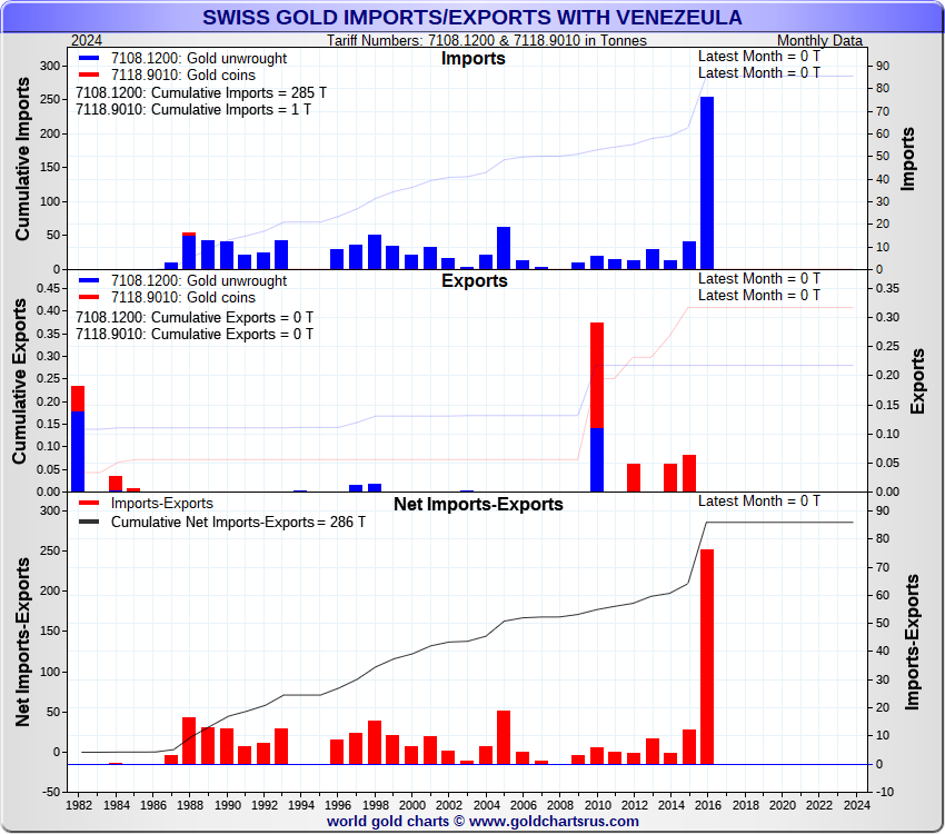 Tonnages are derived from CHF values divided by the CHF gold price. Source: Swiss Data |