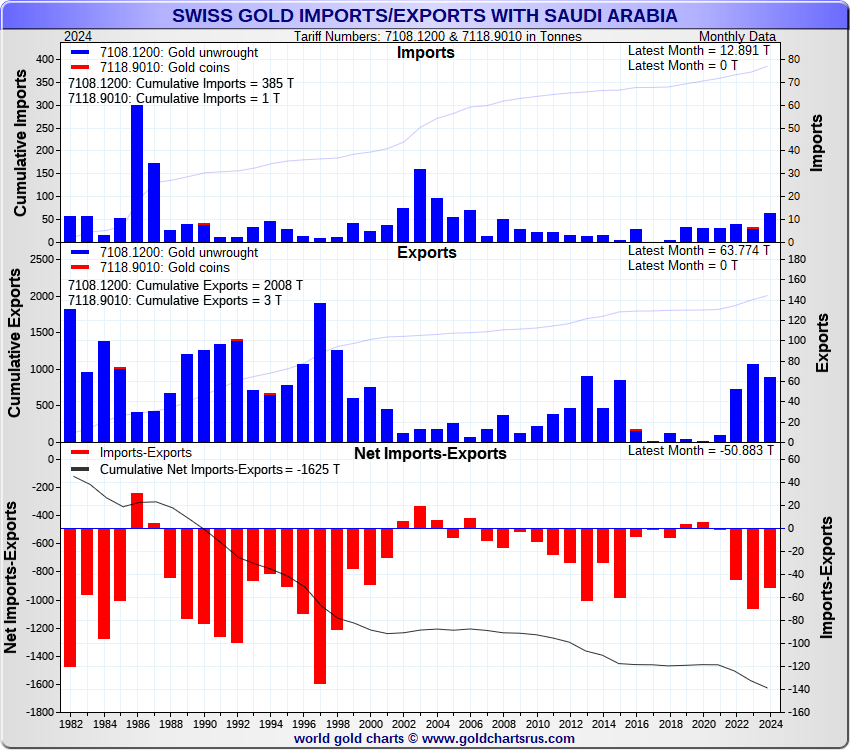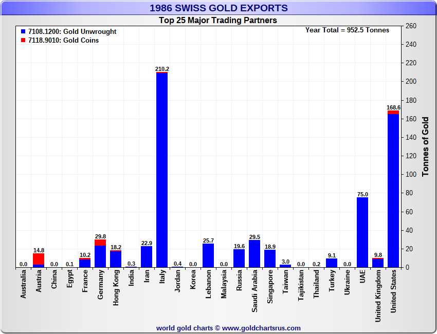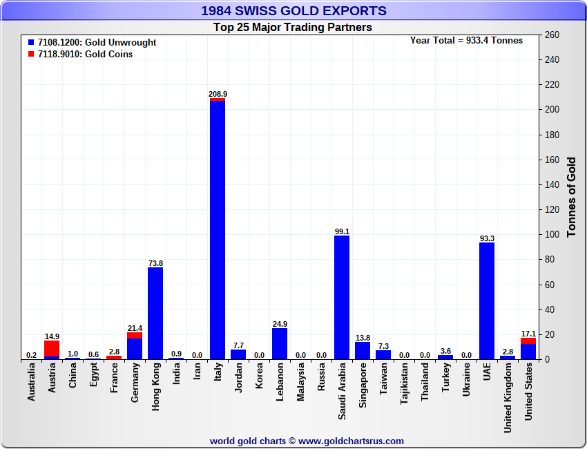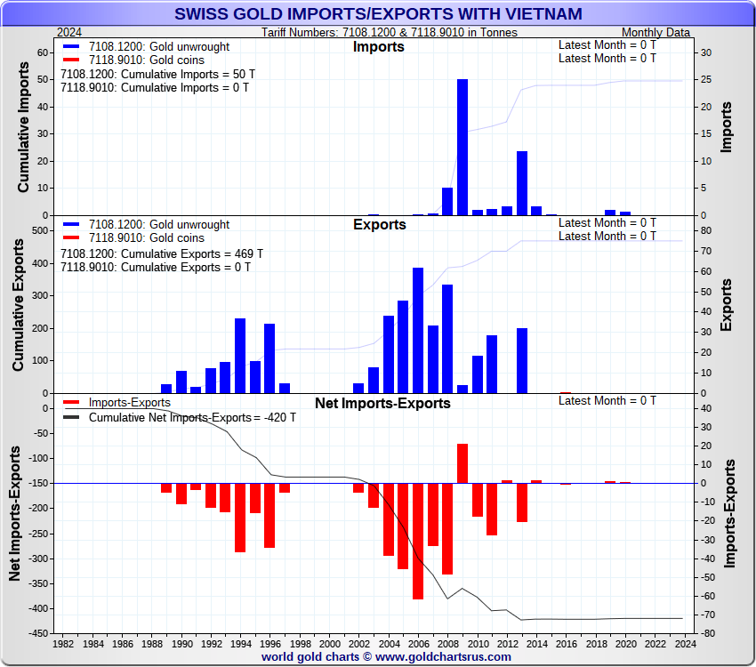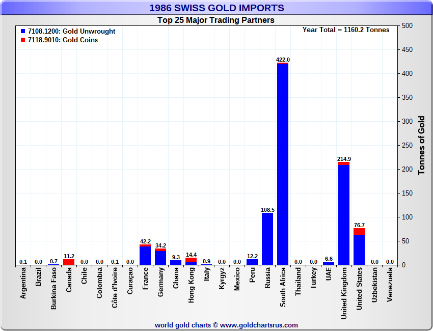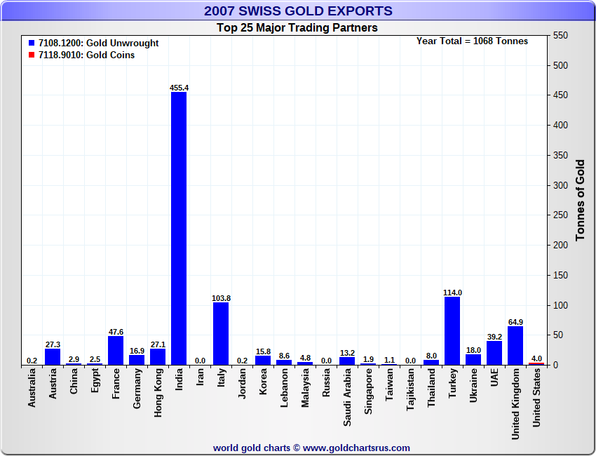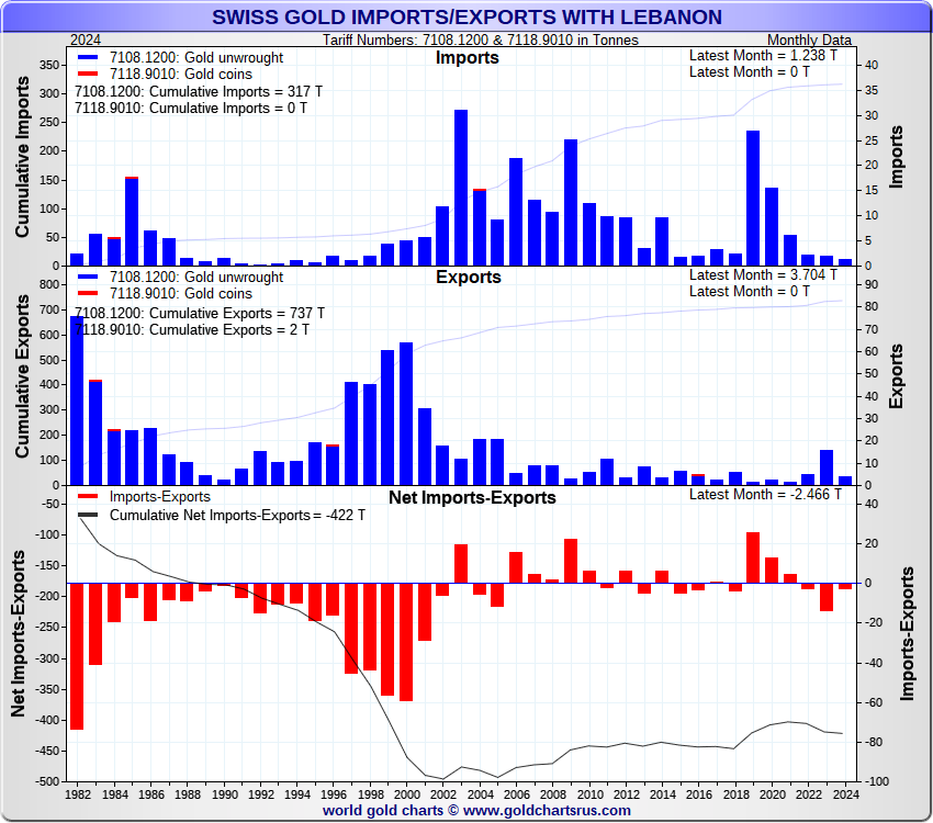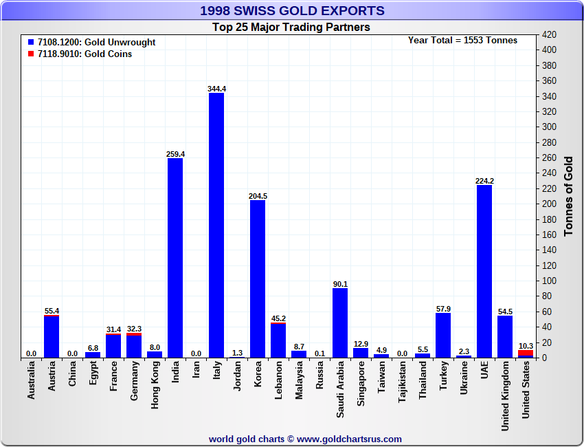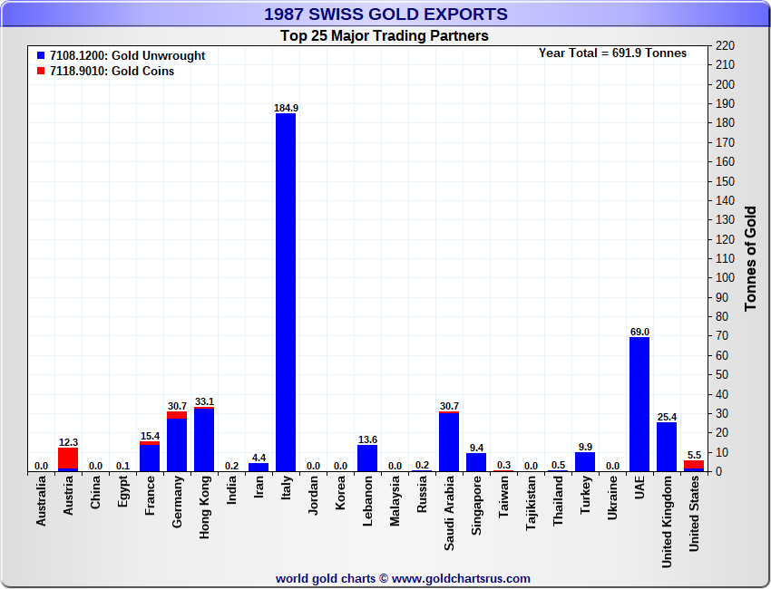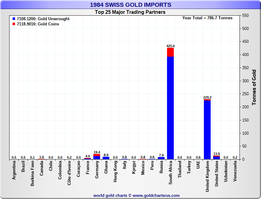Tonnages are derived from CHF values divided by the CHF gold price. Source: Swiss Data |