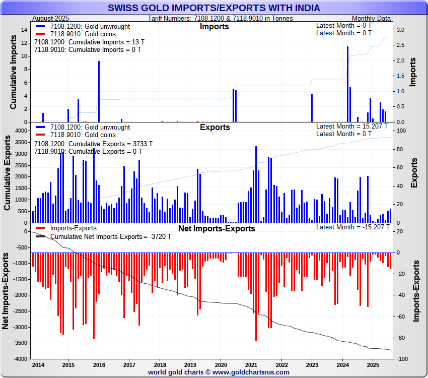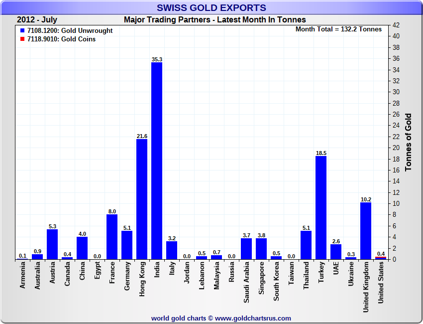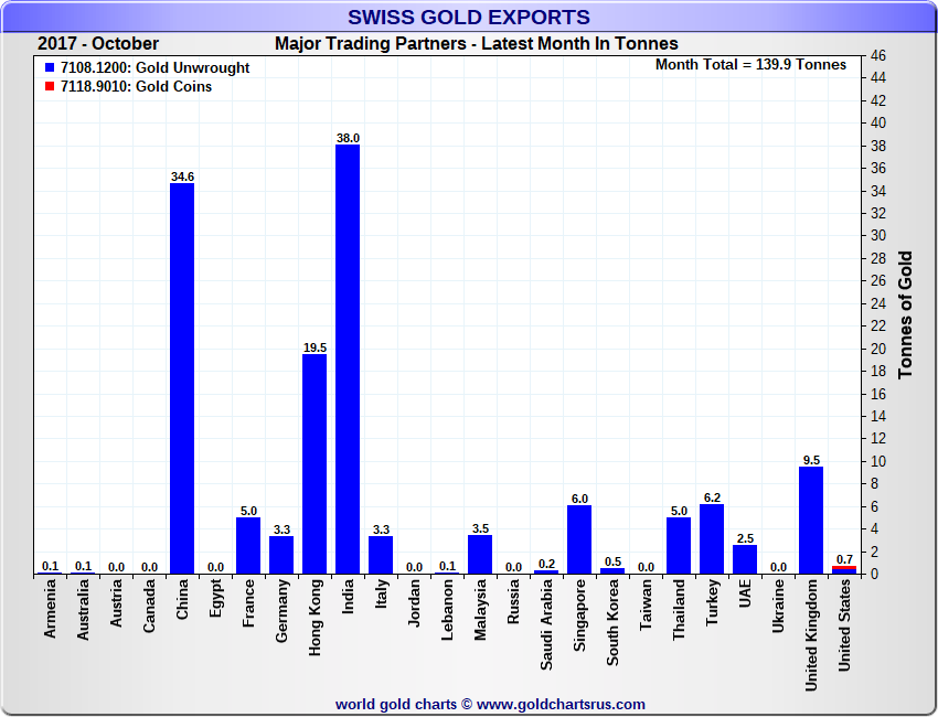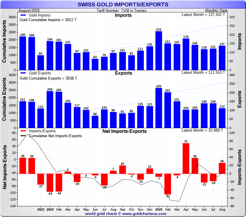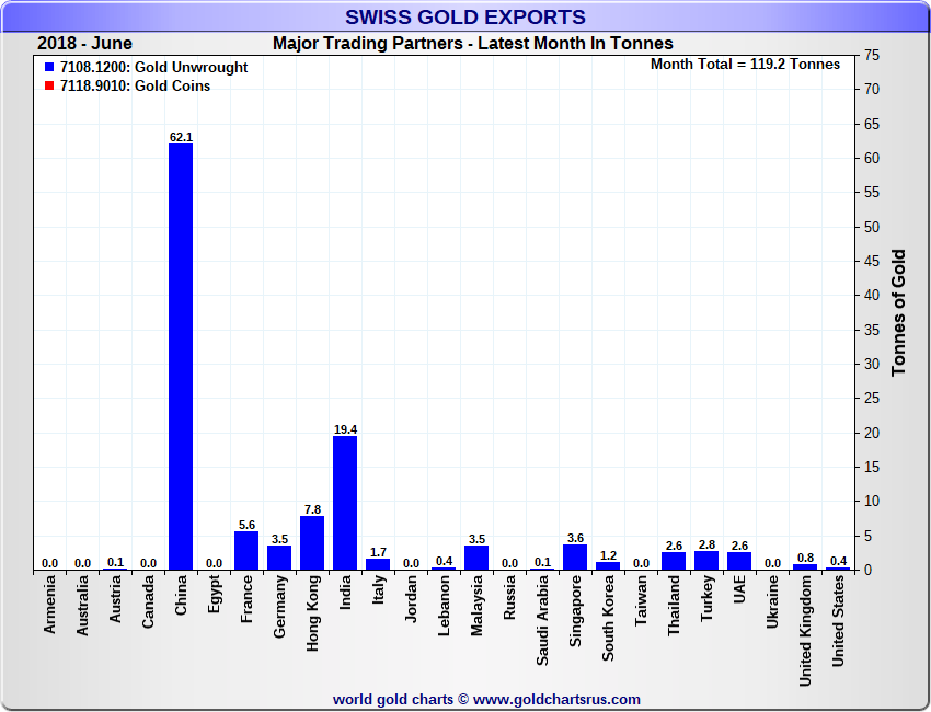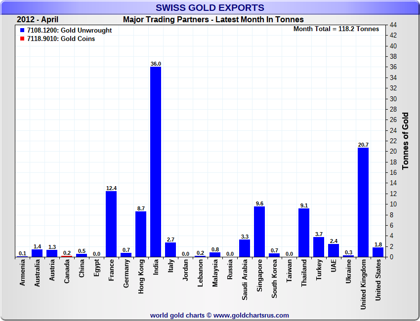 Tonnages are derived from CHF values divided by the CHF gold price. Source: Swiss Data |