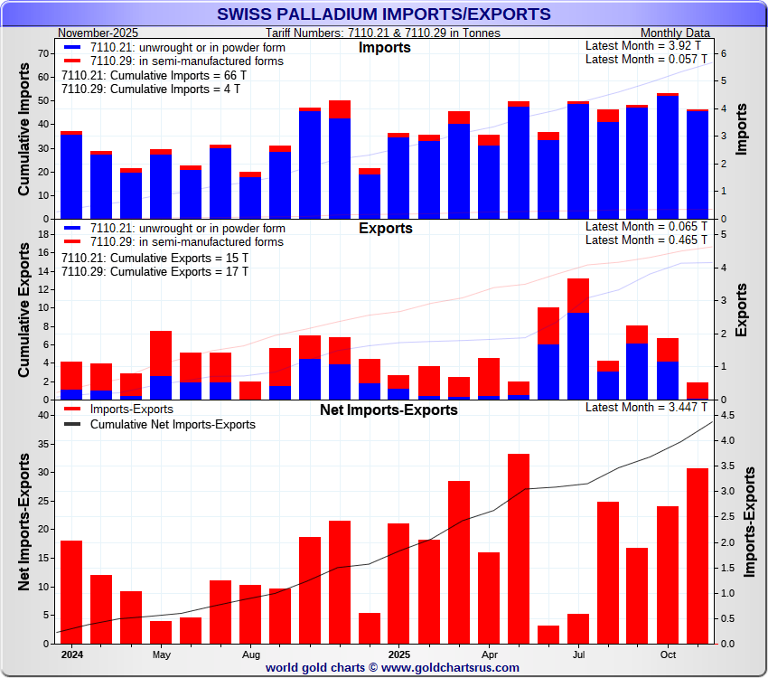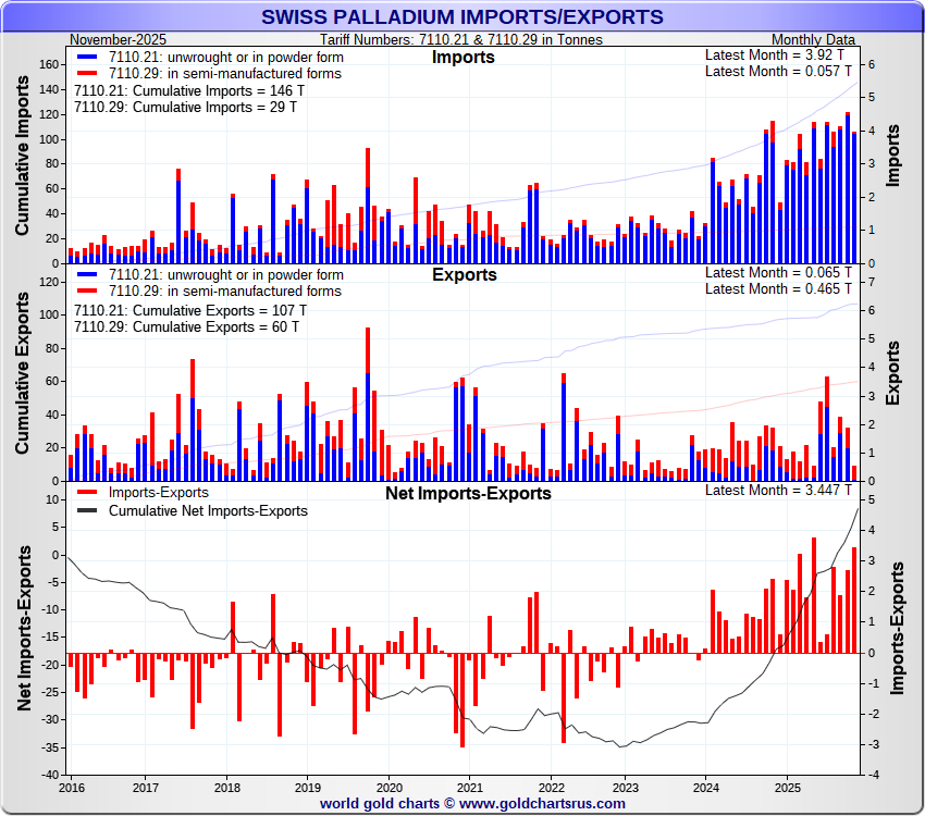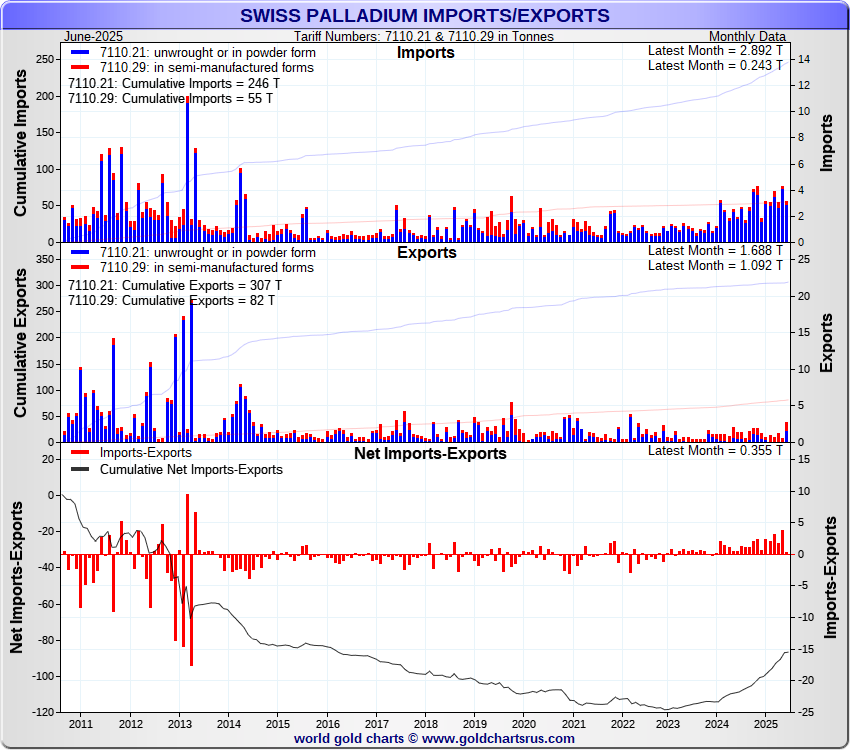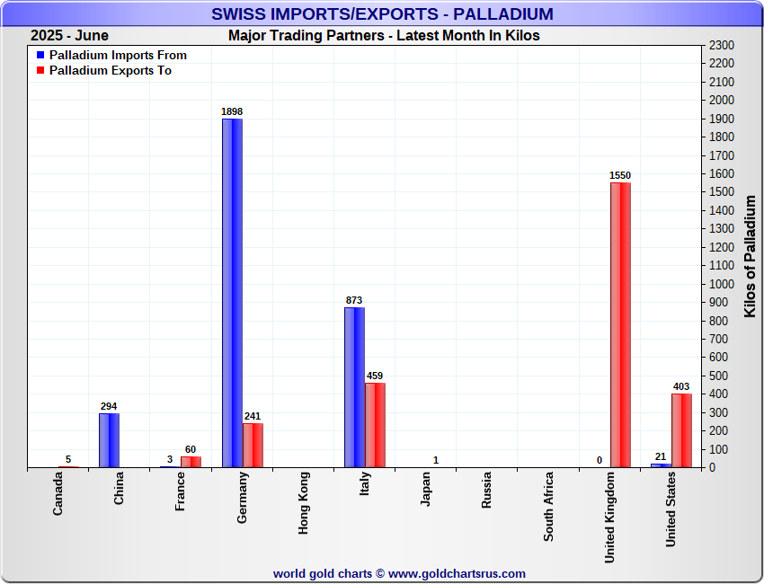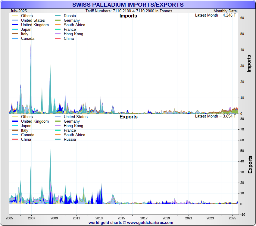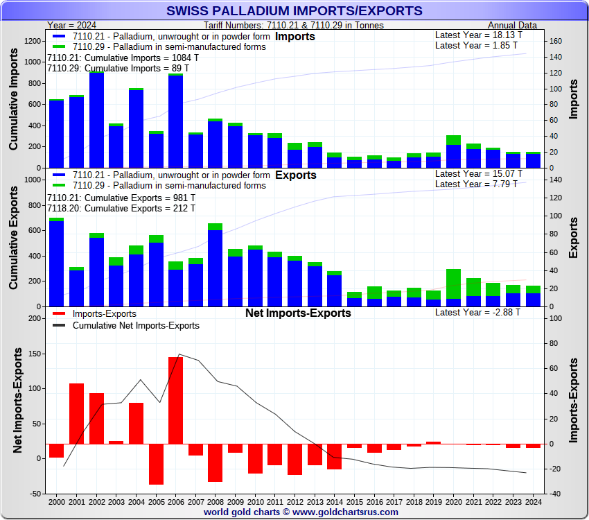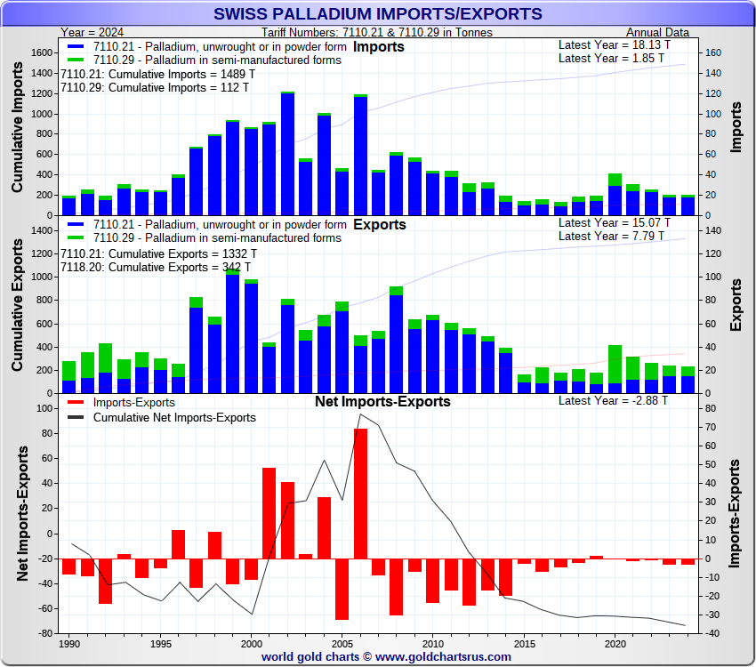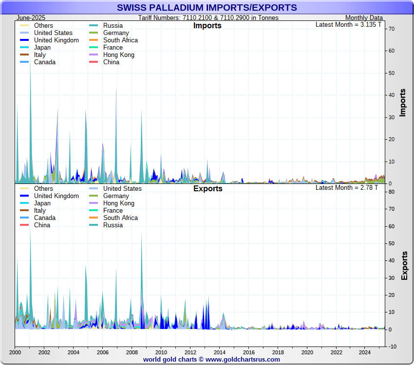 Tonnages are derived from CHF values divided by the CHF palladium price. Source: Swiss Data |