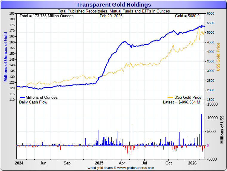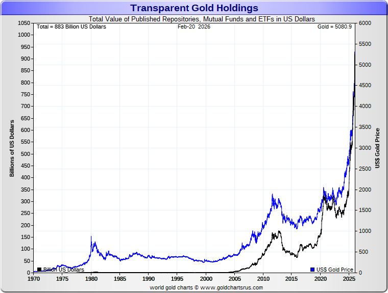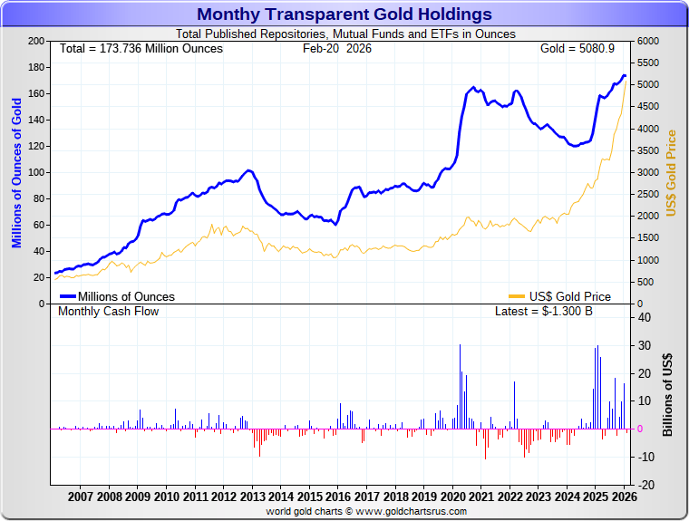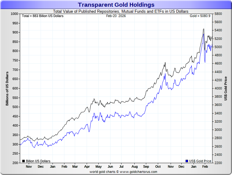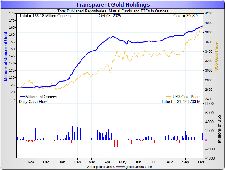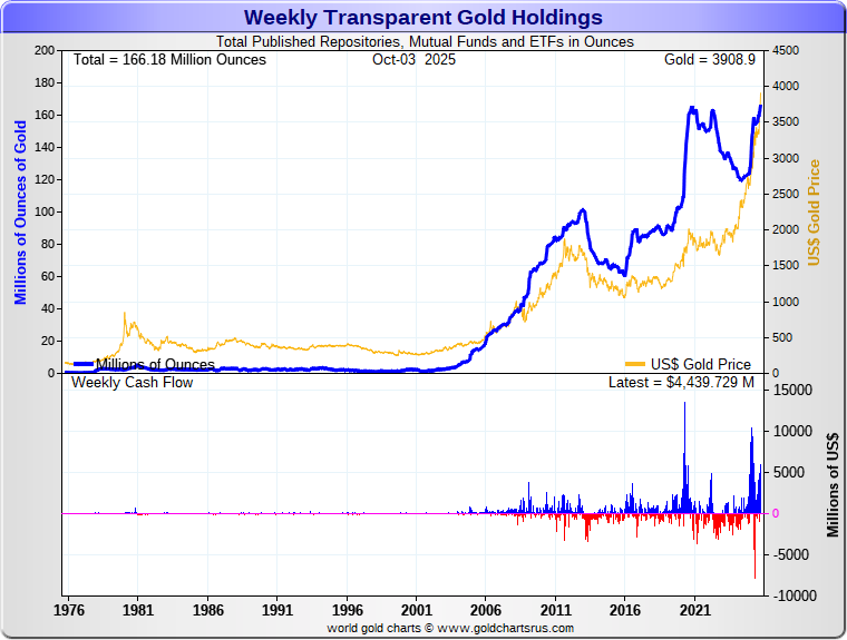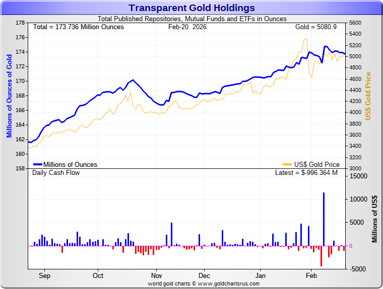 Holdings totaled from Repositories, Mutual Funds, ETFs and electronic Precious Metal sources across the globe