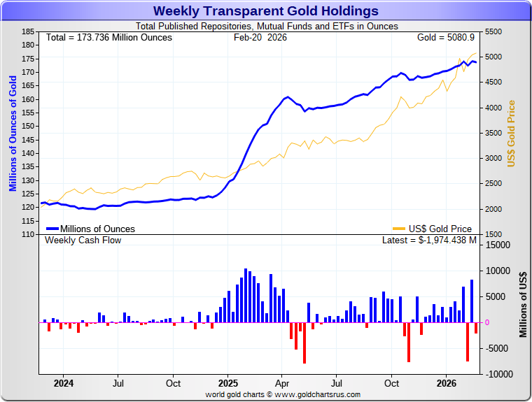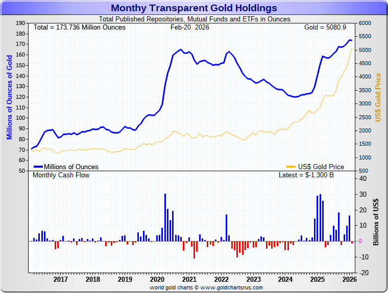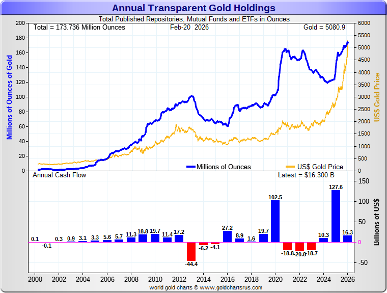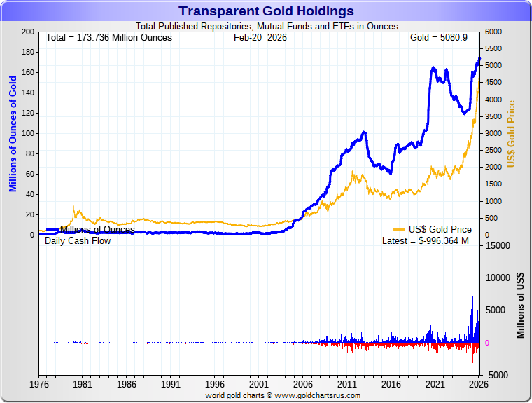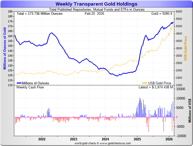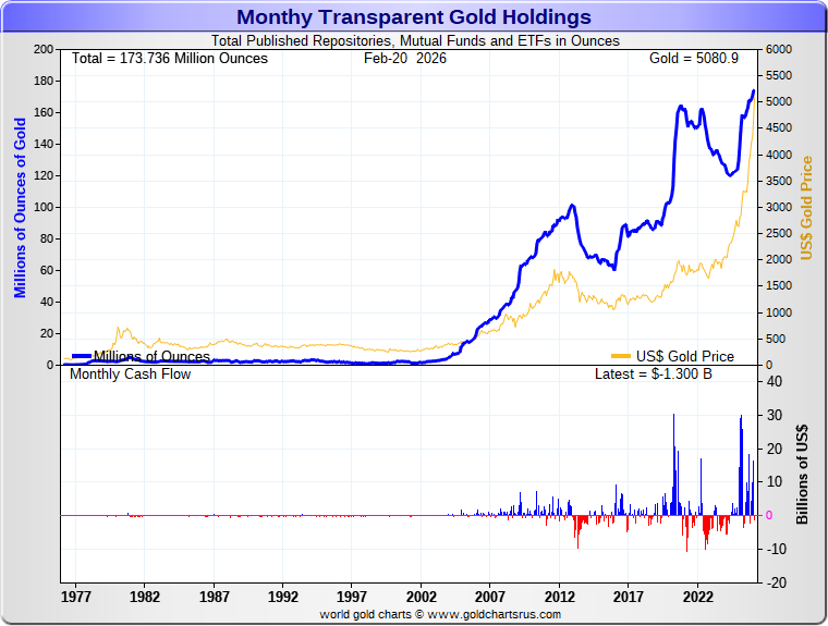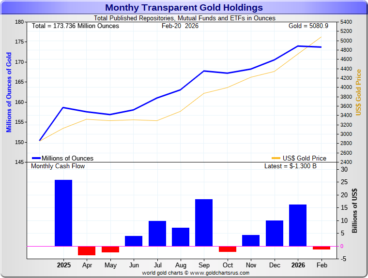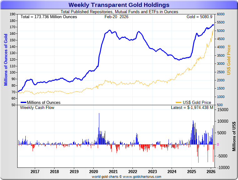 Holdings totaled from Repositories, Mutual Funds, ETFs and electronic Precious Metal sources across the globe