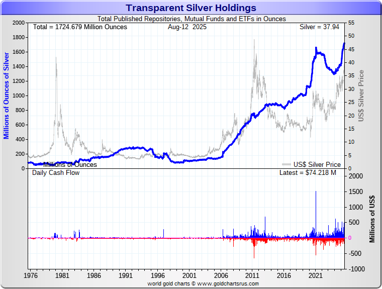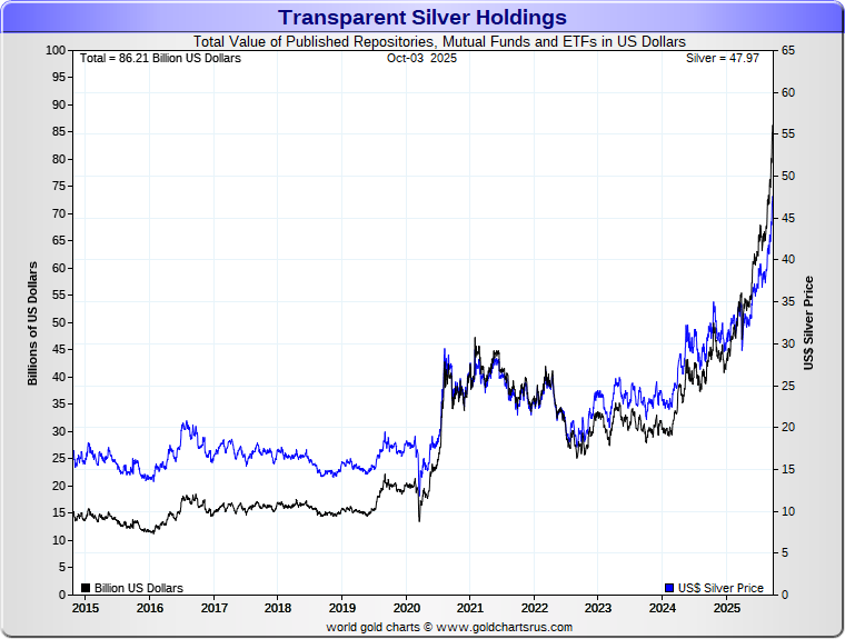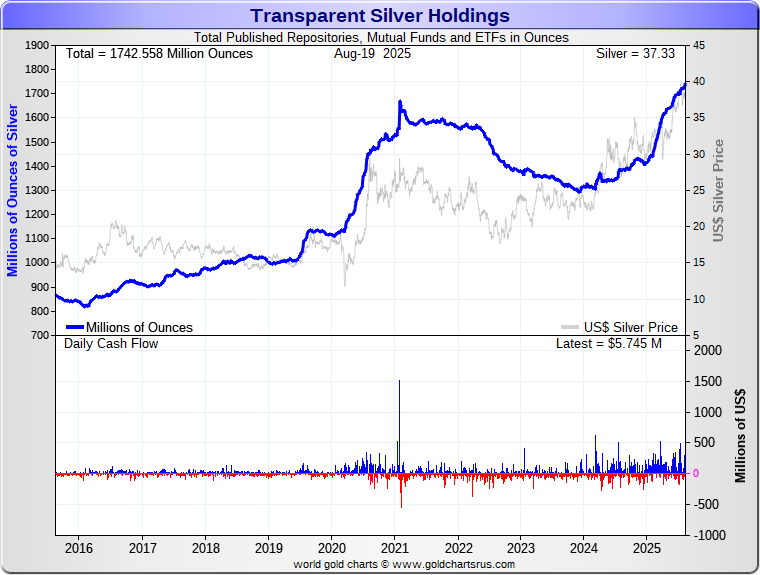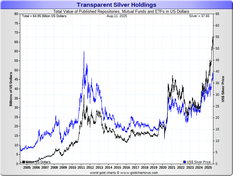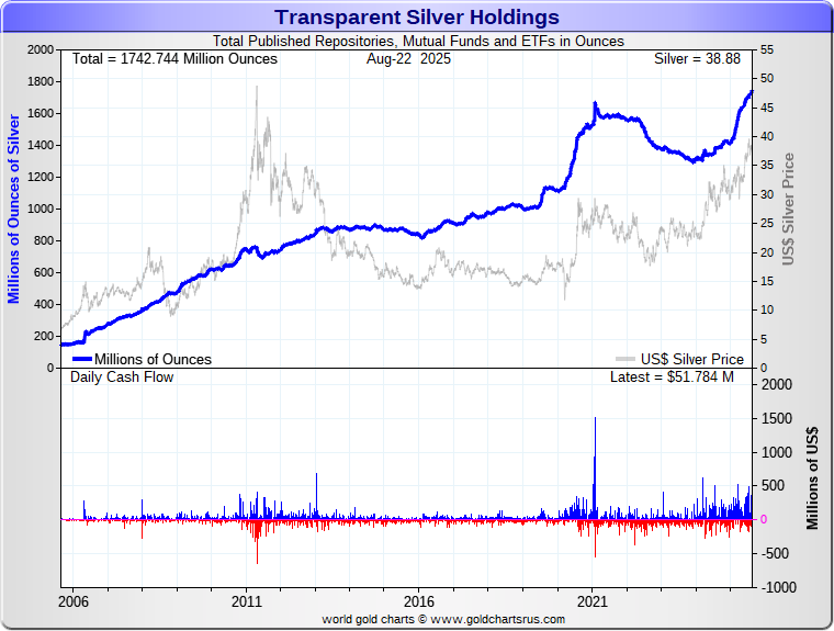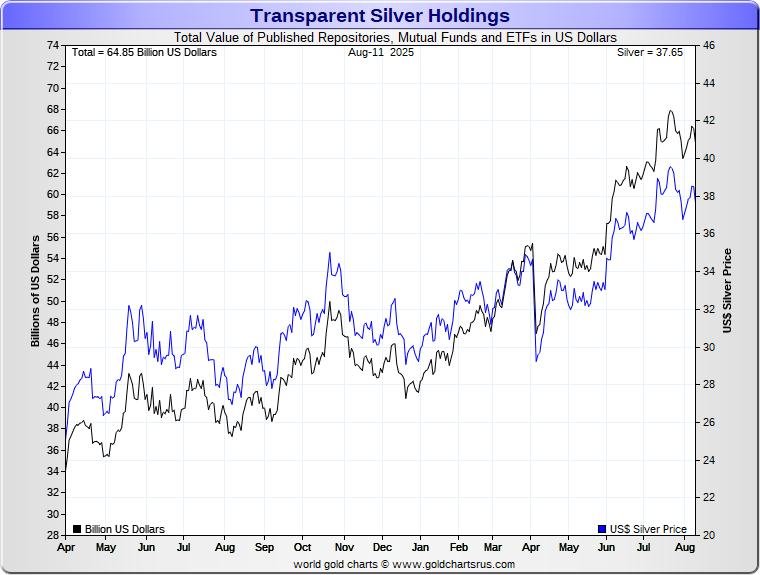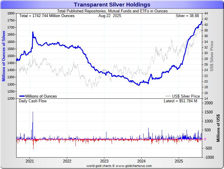 Holdings totaled from Repositories, Mutual Funds, ETFs and electronic Precious Metal sources across the globe |