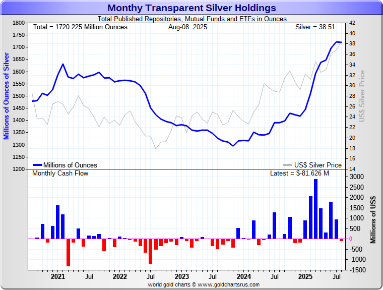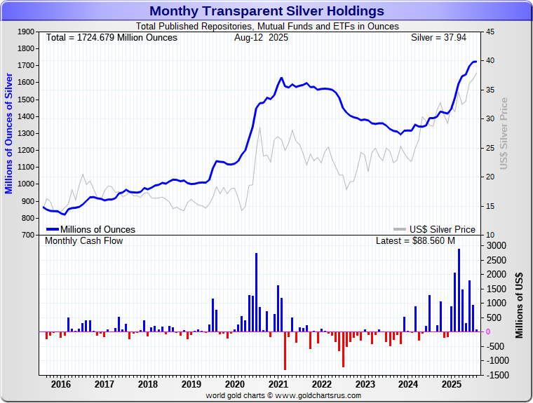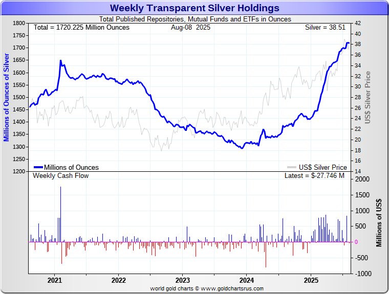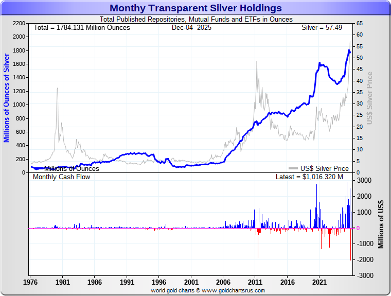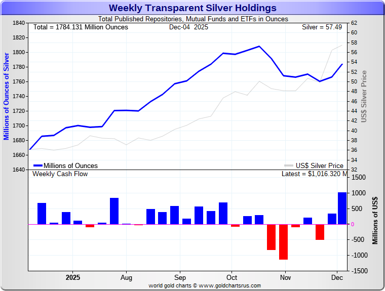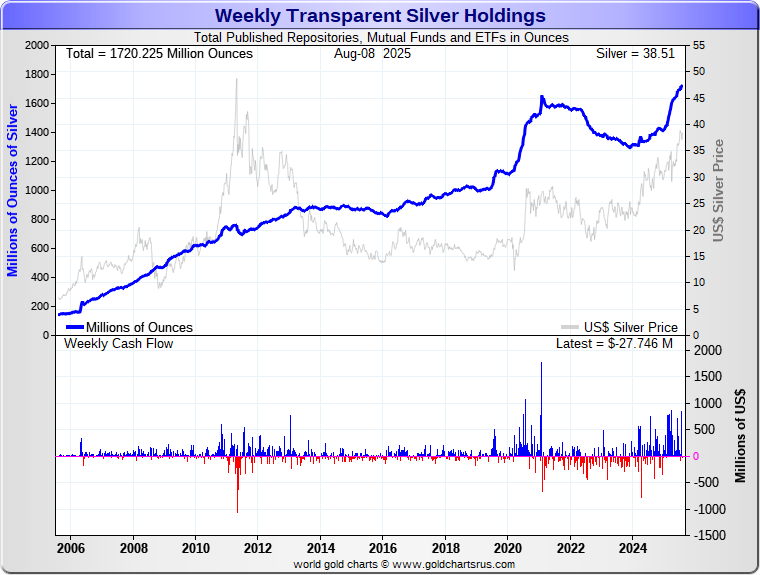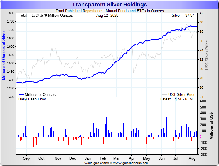 Holdings totaled from Repositories, Mutual Funds, ETFs and electronic Precious Metal sources across the globe |