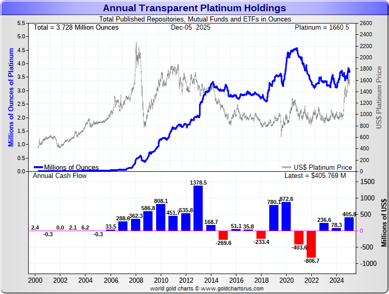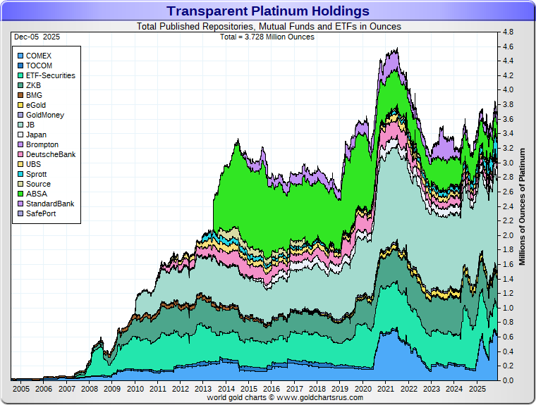 Holdings totaled from Repositories, Mutual Funds, ETFs and electronic Precious Metal sources across the globe |