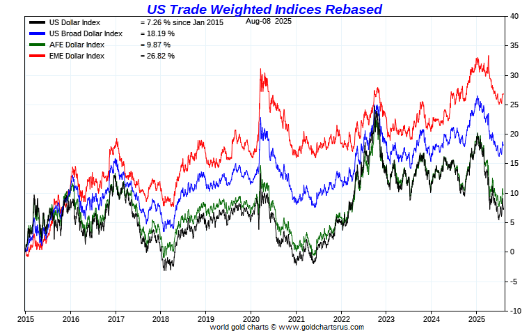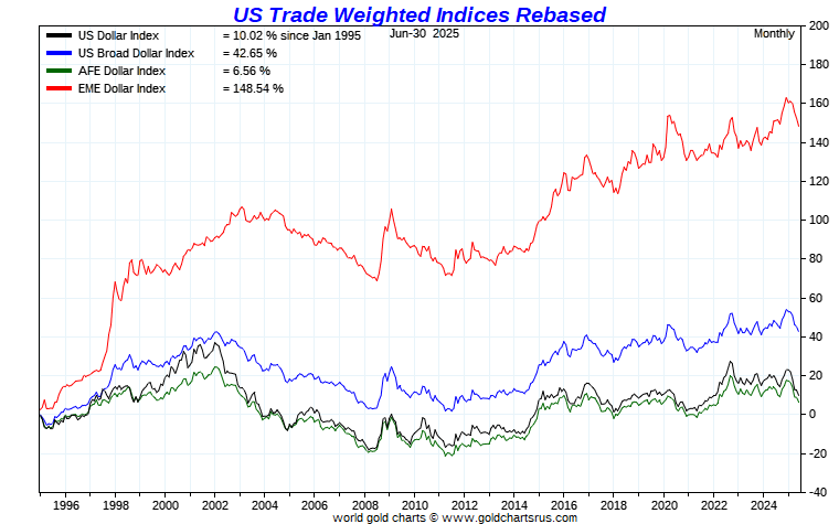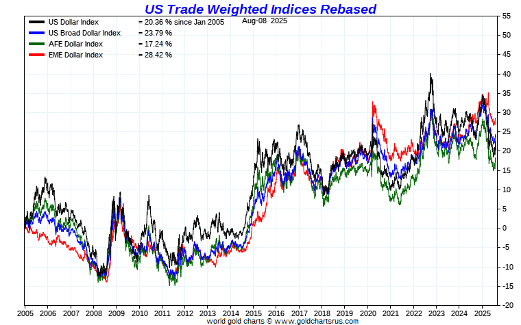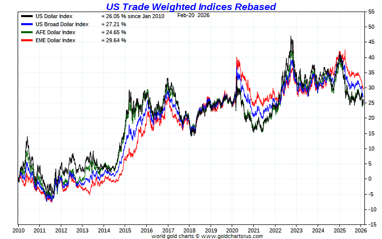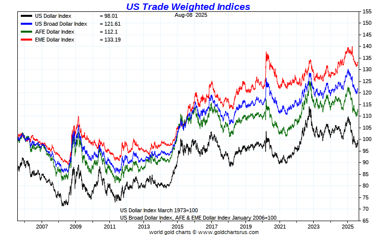 The US Dollar index is a trade-weighted average of the foreign exchange rates between the US dollar & six major world currencies. Explanation Trade Weighted US Dollar Index: Broad Dollar Index