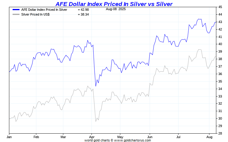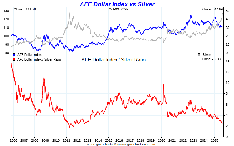Trade Weighted US Dollar Index AFE Dollar Index vs Silver Or Gold