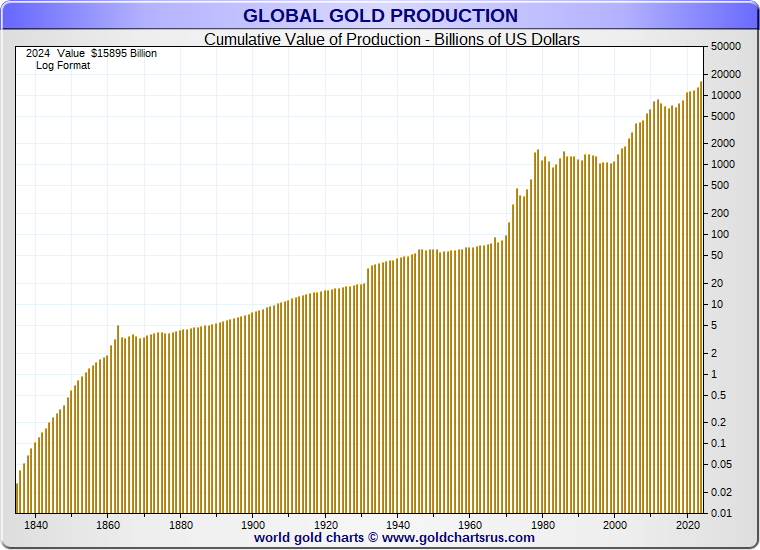 174,000 tonnes (over 91% of the gold ever found) has gone into demand with 145,000 tonnes of this having come from production