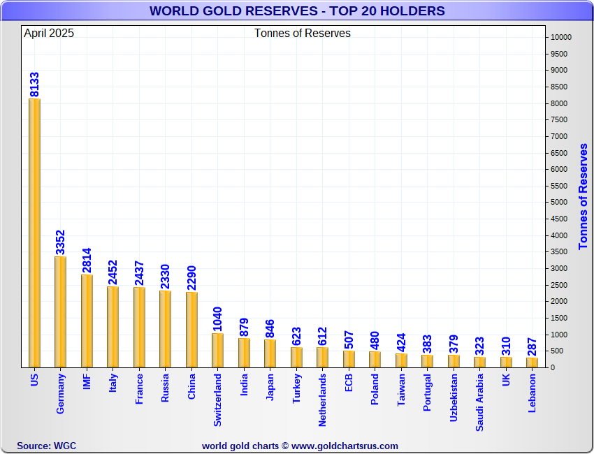 World Gold Reserves - Top 20 Holders Changes in Reserves