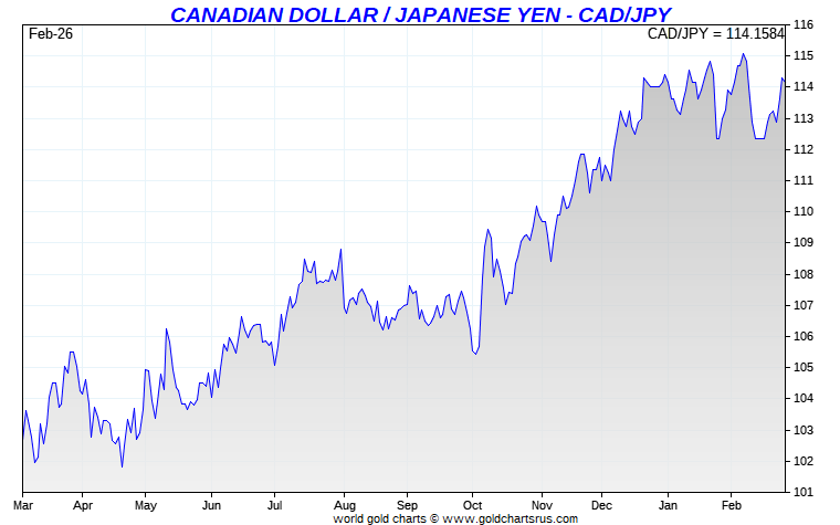 Live Forex Crosses - Japanese Yen - Canadian Dollar