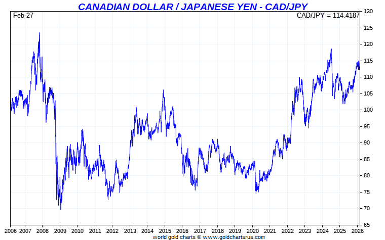 Live Forex Crosses - Japanese Yen - Canadian Dollar