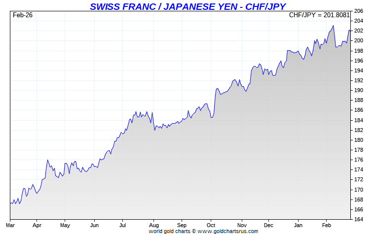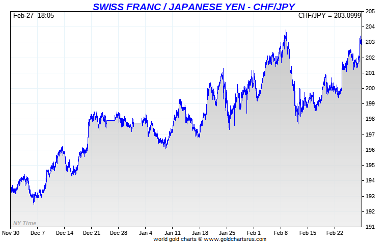 Live Forex Crosses - Japanese Yen - Swiss Franc