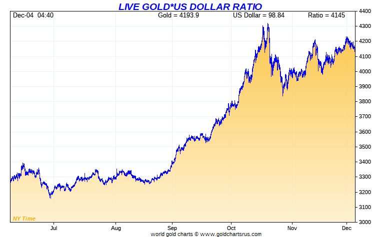 Live Precious Metal Ratios - Gold/US Dollar Ratio
