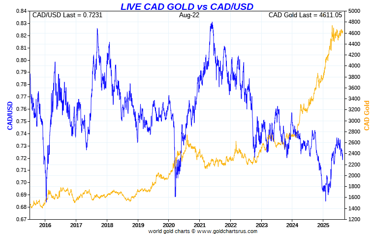 Live Forex PMs - Gold in Canadian Dollars