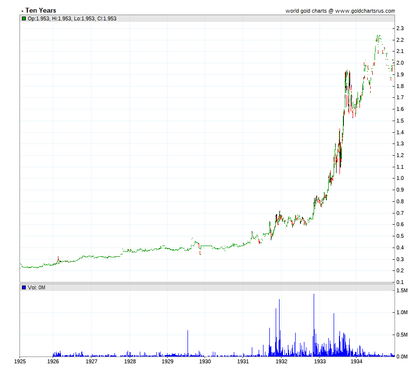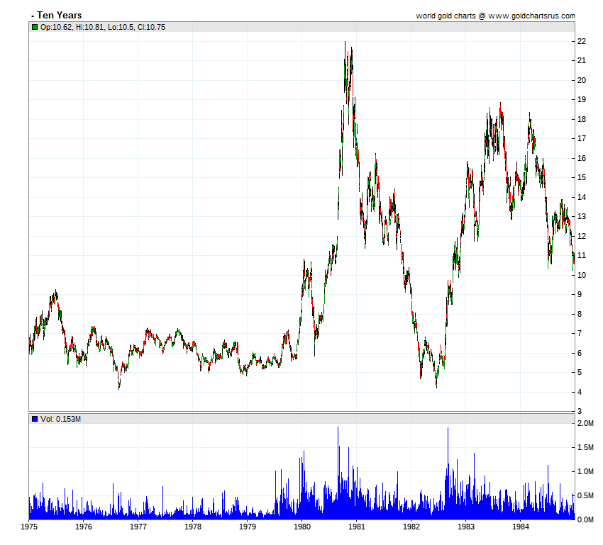 HOMESTAKE MINING 10 YEAR CHARTS |