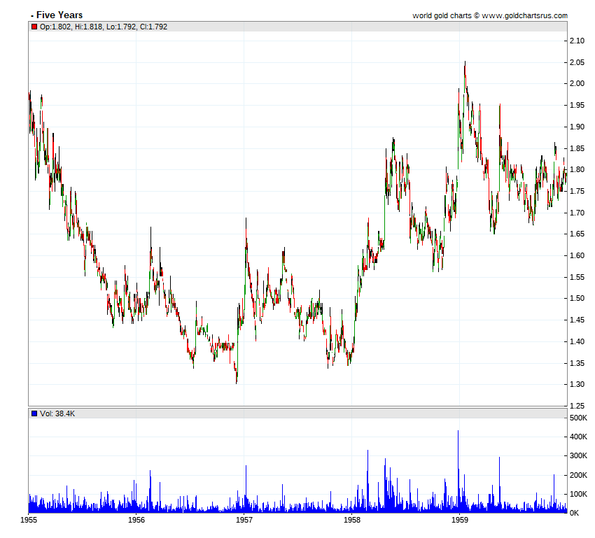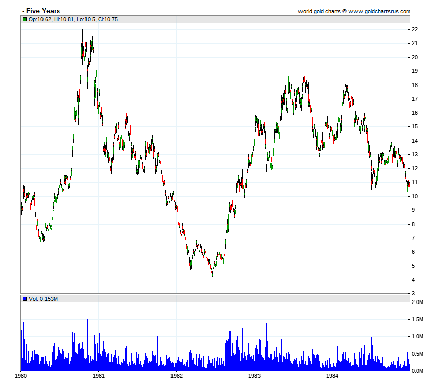 HOMESTAKE MINING 5 YEAR CHARTS |