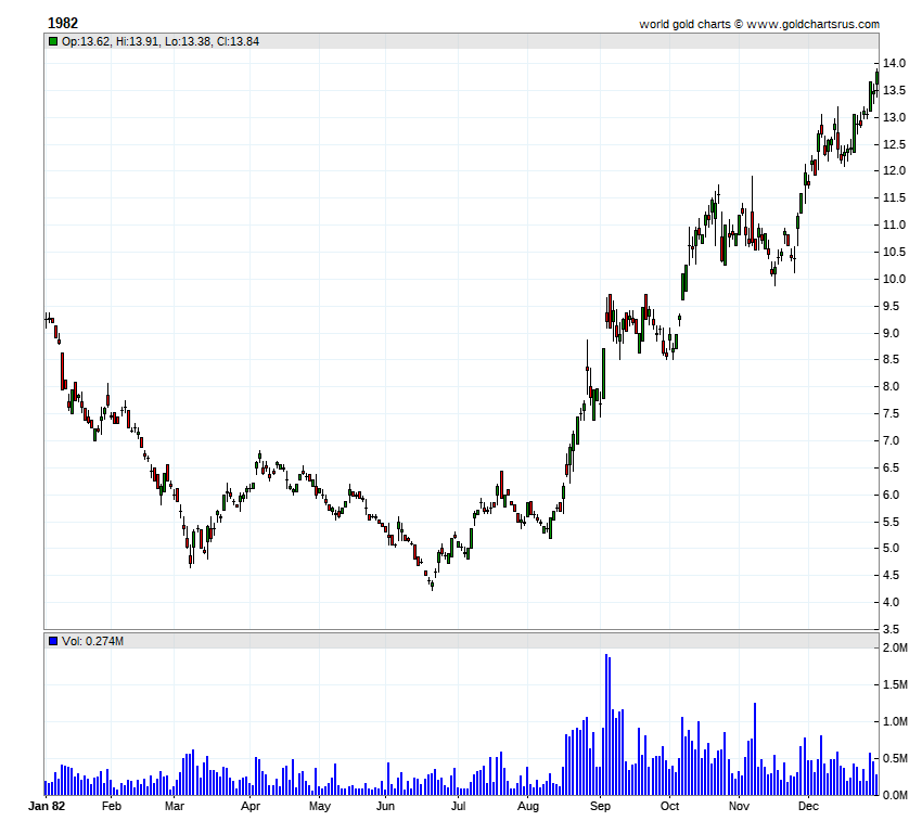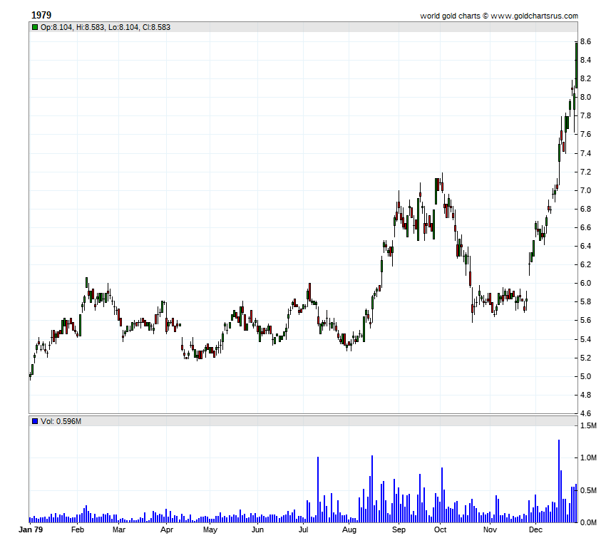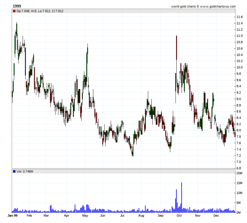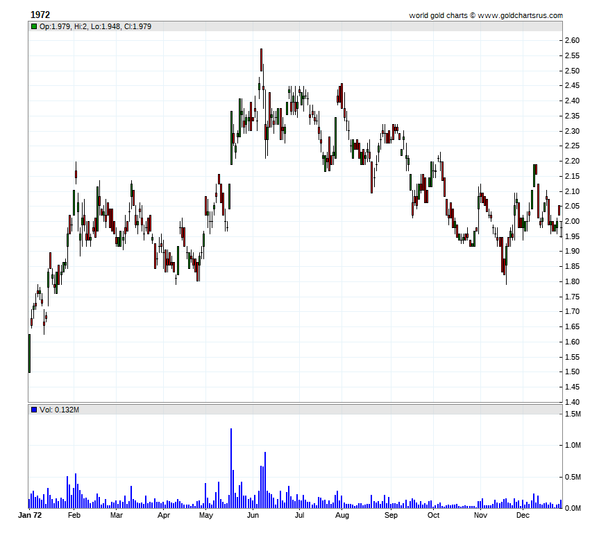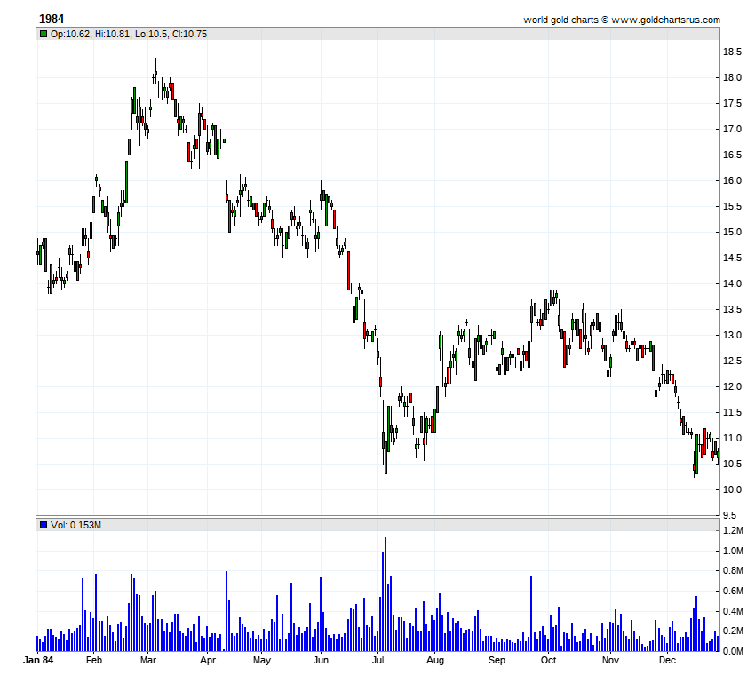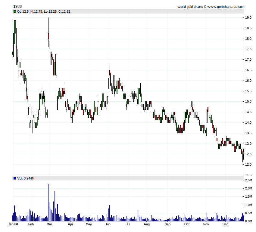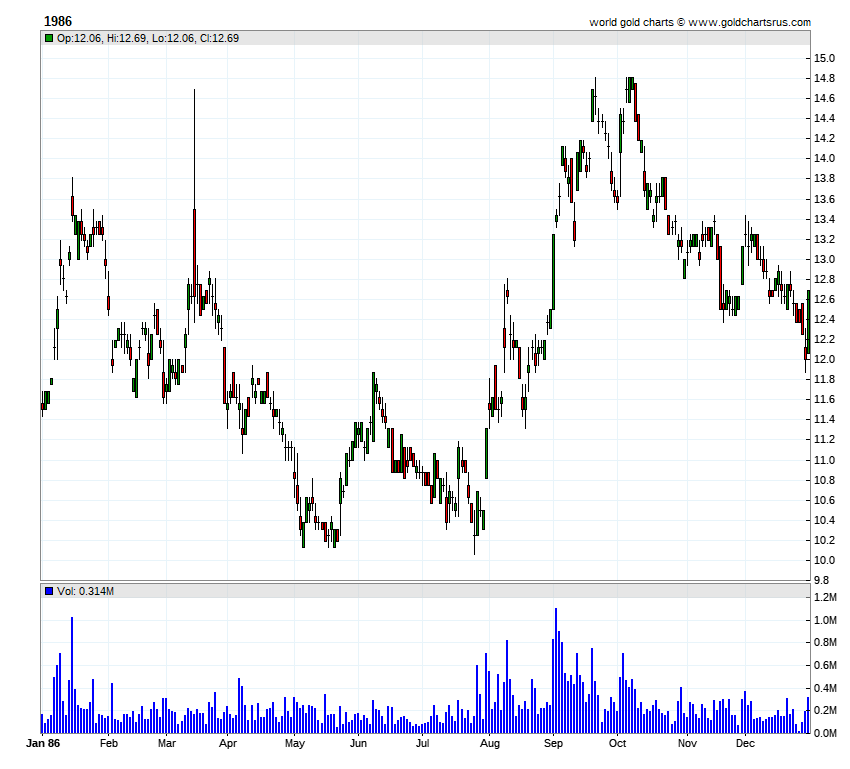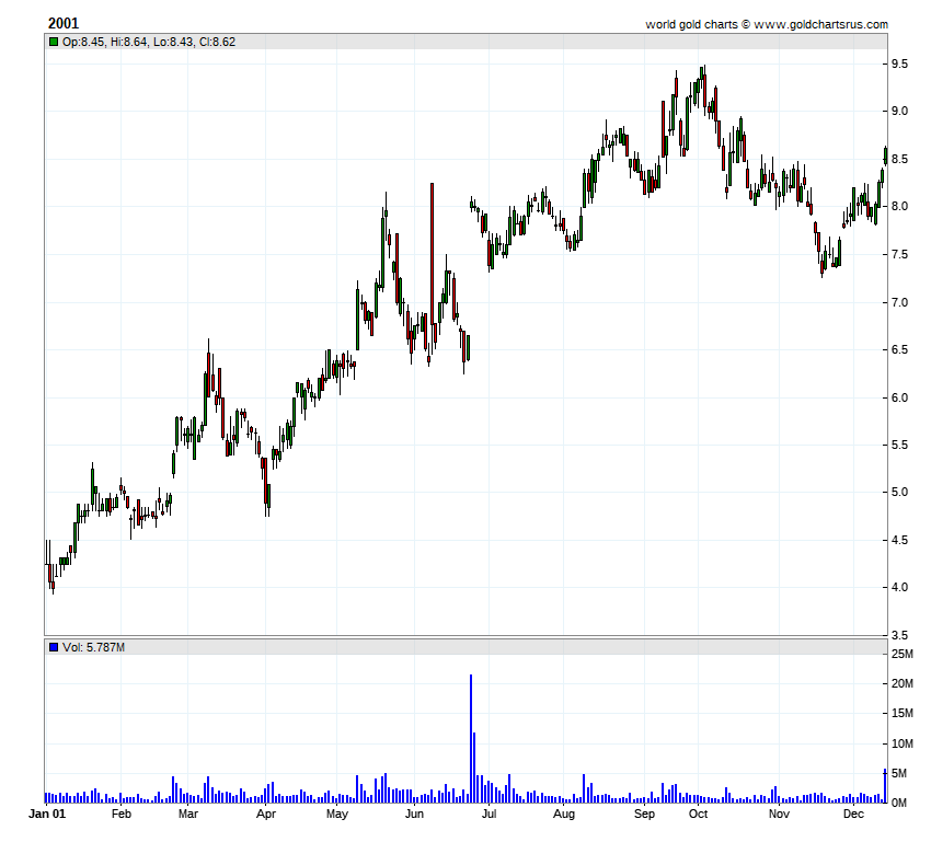 HOMESTAKE MINING YEARLY CHARTS(split adjusted)
