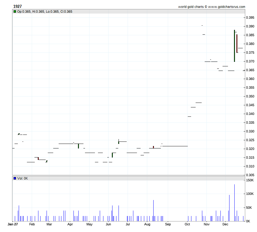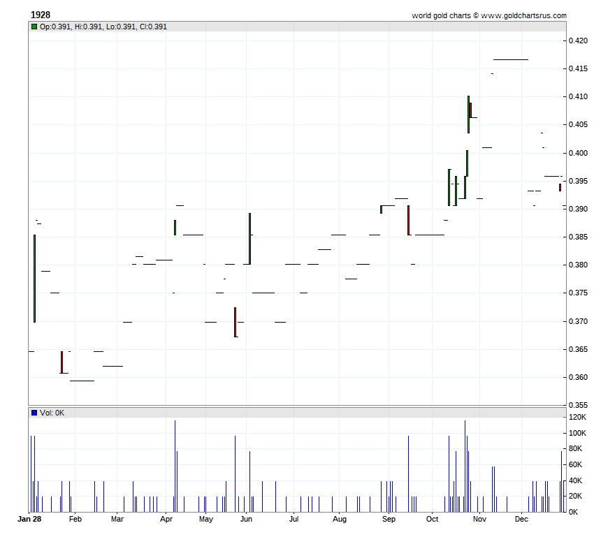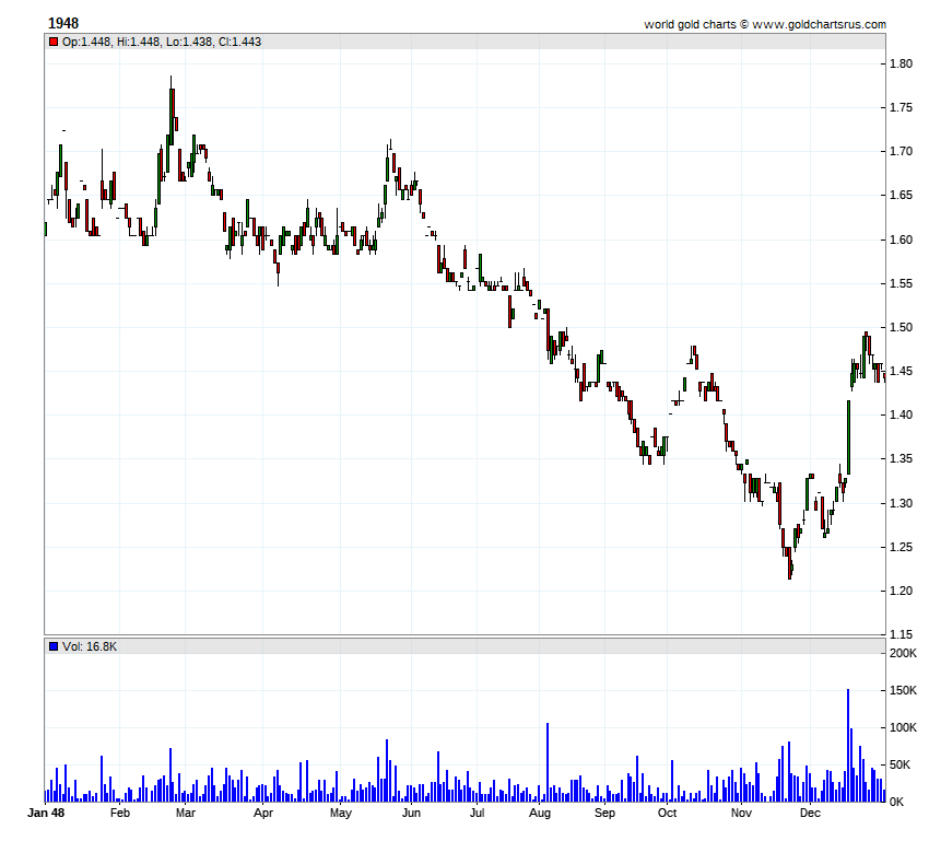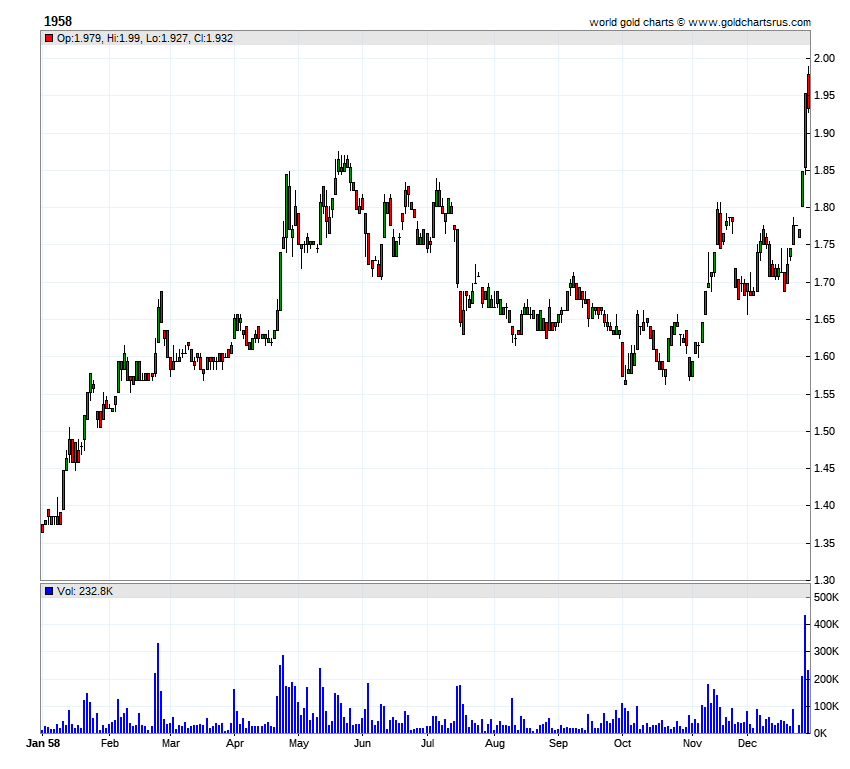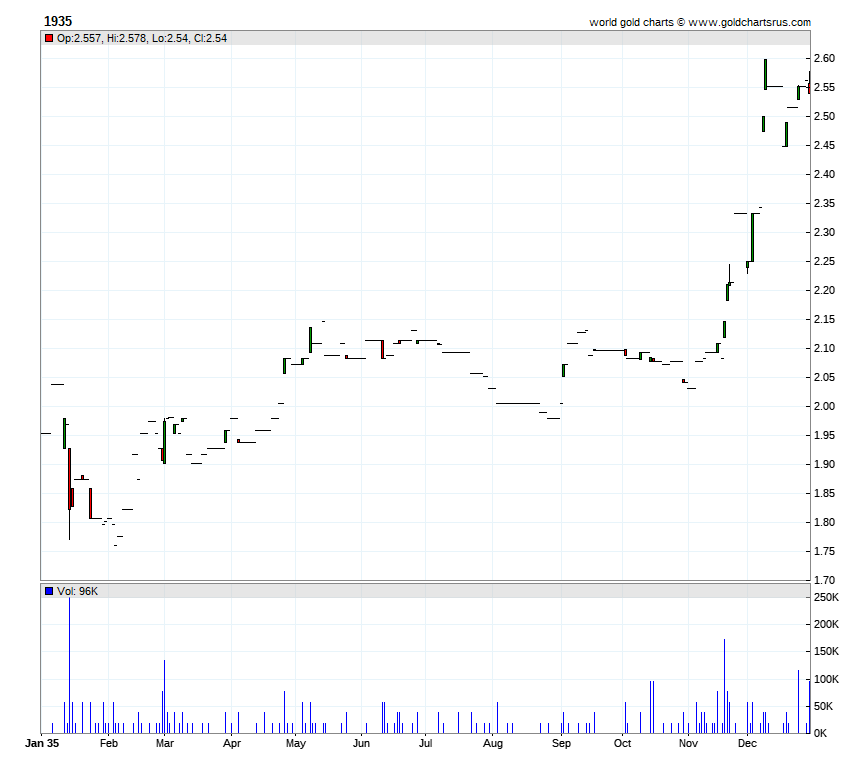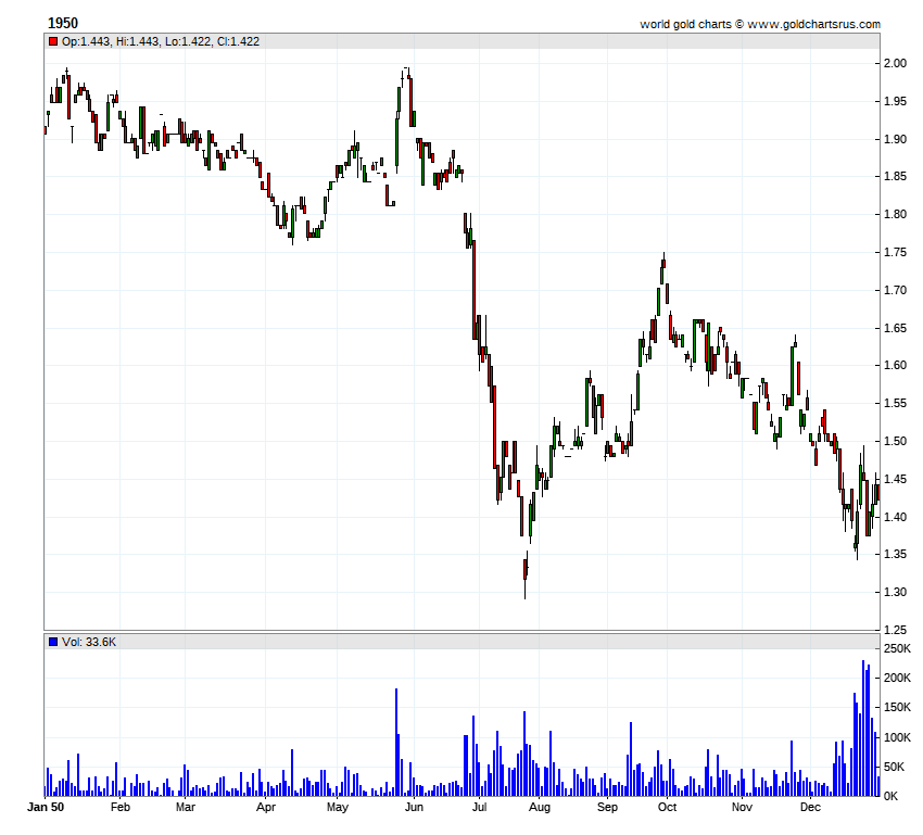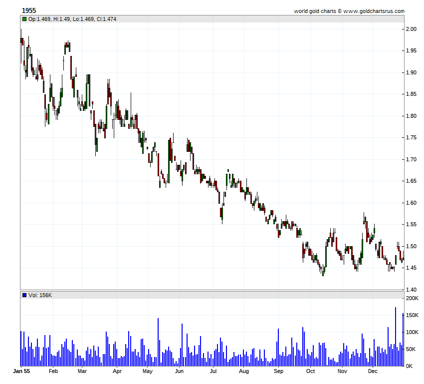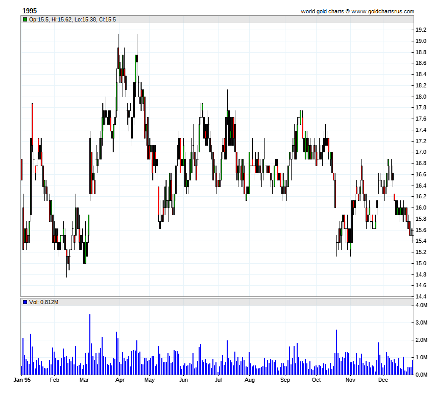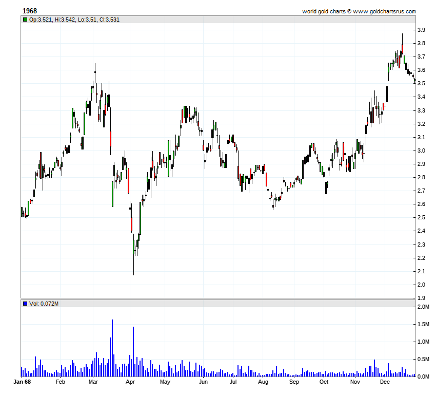 HOMESTAKE MINING YEARLY CHARTS(split adjusted)