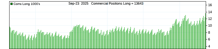 The top chart is fixed with the lower 3 panes available to show the various dataseries provided by the CFTC.