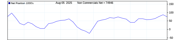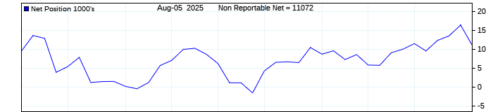 The top chart is fixed with the lower 3 panes available to show the various dataseries provided by the CFTC.