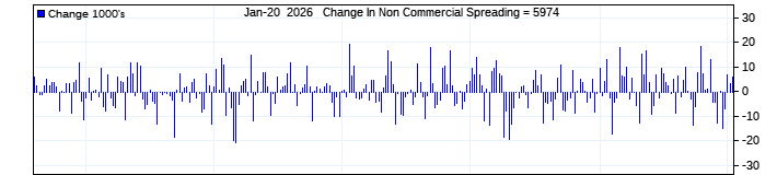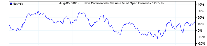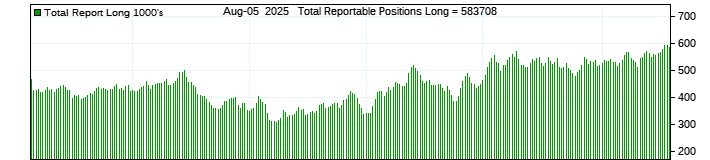 The top chart is fixed with the lower 3 panes available to show the various dataseries provided by the CFTC.