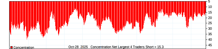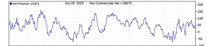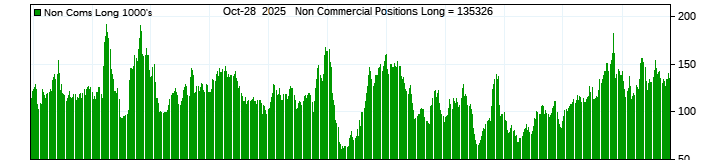 The top chart is fixed with the lower 3 panes available to show the various dataseries provided by the CFTC.