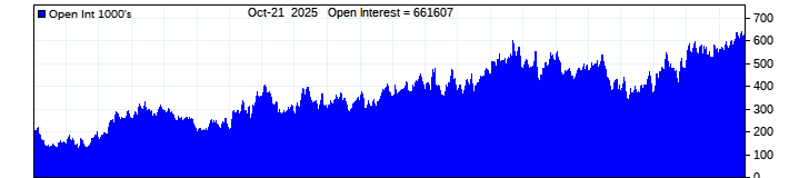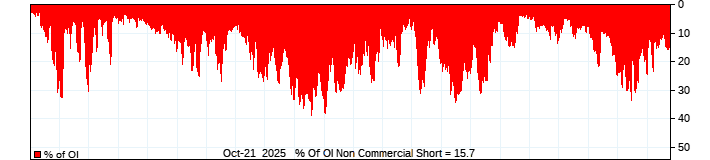 The top chart is fixed with the lower 3 panes available to show the various dataseries provided by the CFTC.