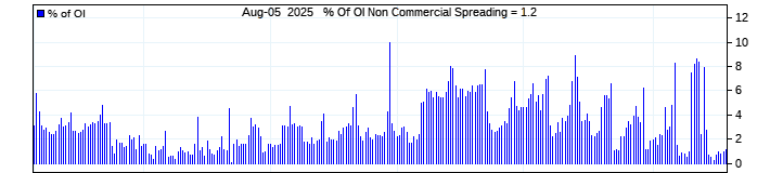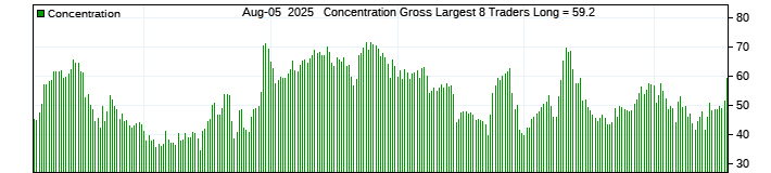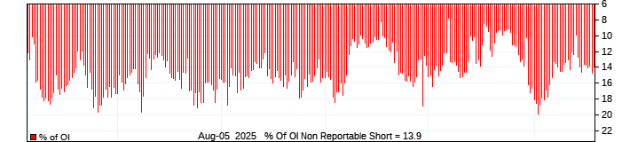 The top chart is fixed with the lower 3 panes available to show the various dataseries provided by the CFTC.