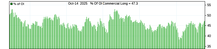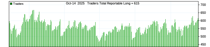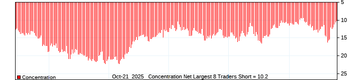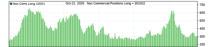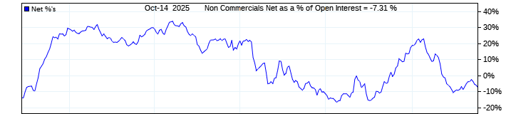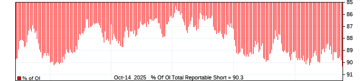 The top chart is fixed with the lower 3 panes available to show the various dataseries provided by the CFTC.