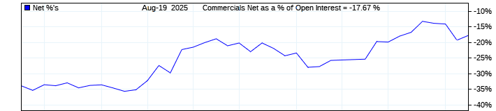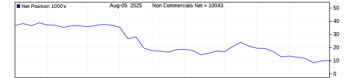 The top chart is fixed with the lower 3 panes available to show the various dataseries provided by the CFTC.