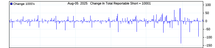 The top chart is fixed with the lower 3 panes available to show the various dataseries provided by the CFTC.