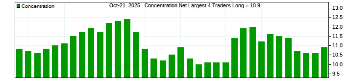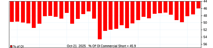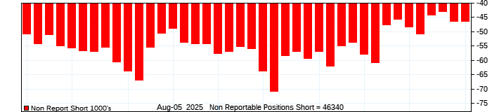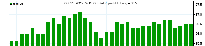 The top chart is fixed with the lower 3 panes available to show the various dataseries provided by the CFTC.