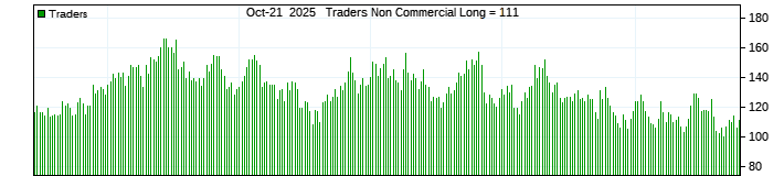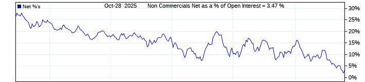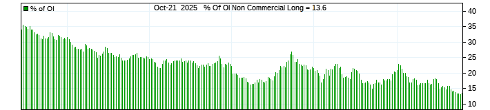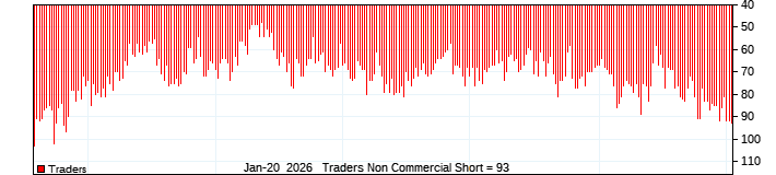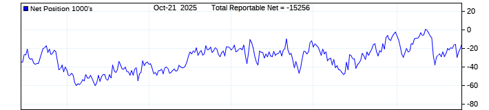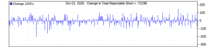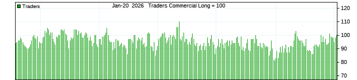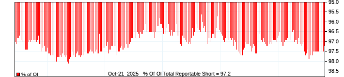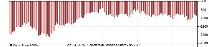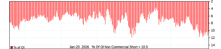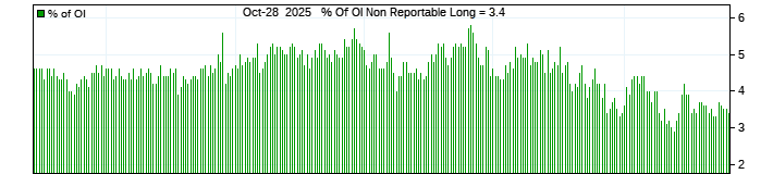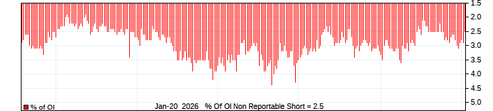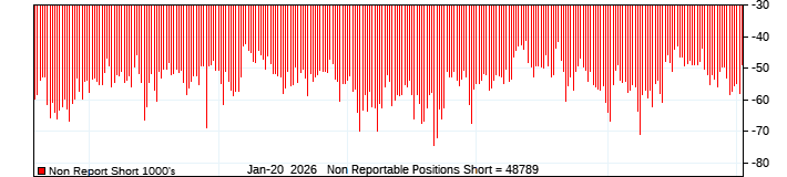 The top chart is fixed with the lower 3 panes available to show the various dataseries provided by the CFTC.