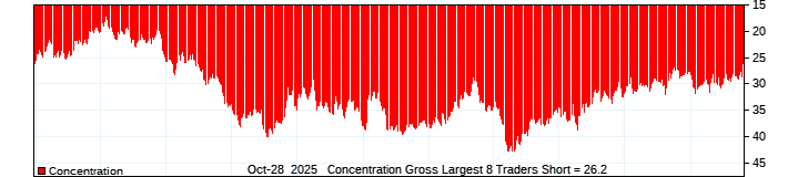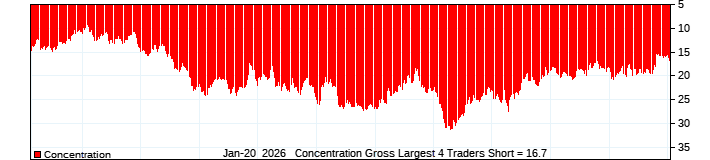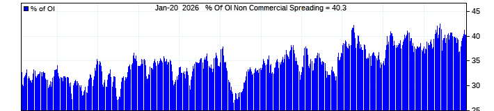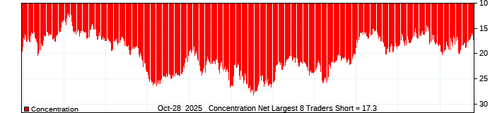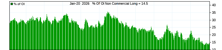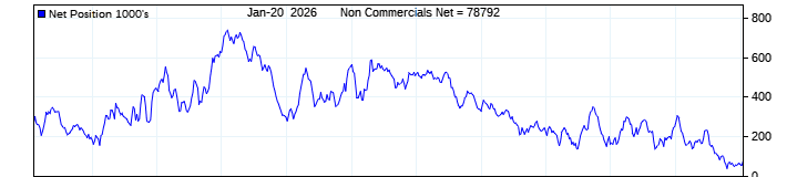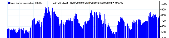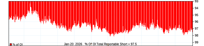 The top chart is fixed with the lower 3 panes available to show the various dataseries provided by the CFTC.
