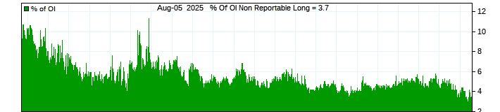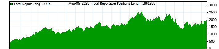 The top chart is fixed with the lower 3 panes available to show the various dataseries provided by the CFTC.