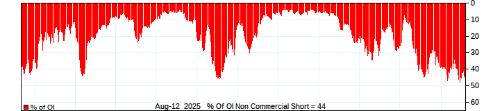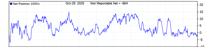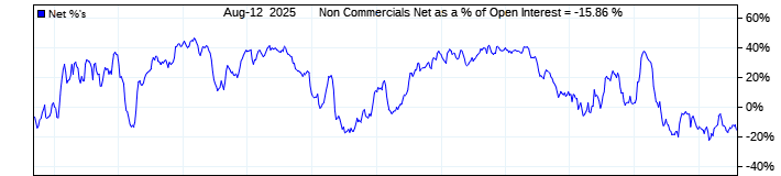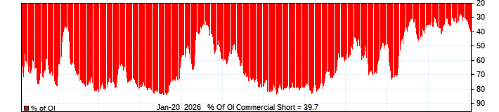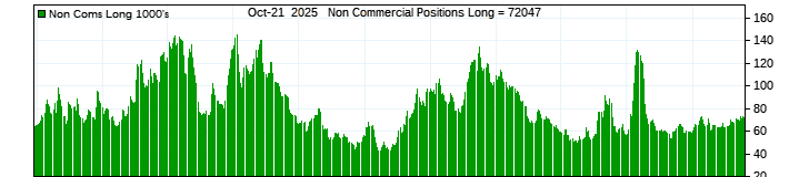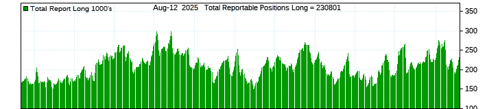 The top chart is fixed with the lower 3 panes available to show the various dataseries provided by the CFTC.
