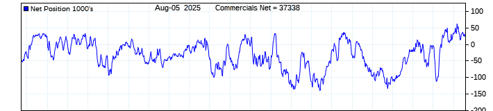 The top chart is fixed with the lower 3 panes available to show the various dataseries provided by the CFTC.