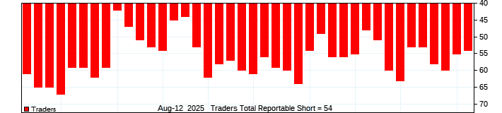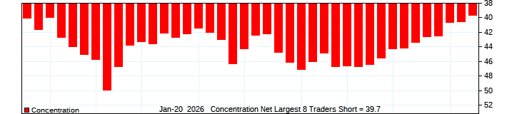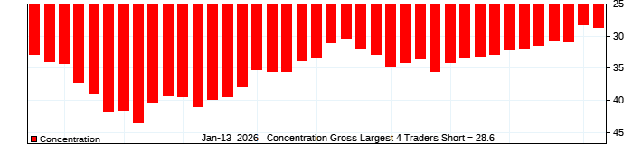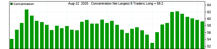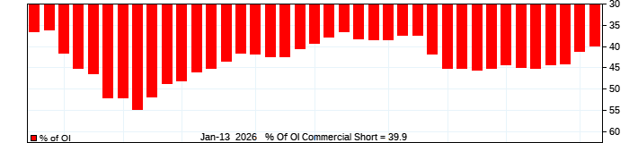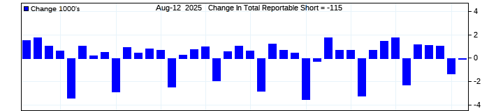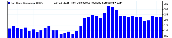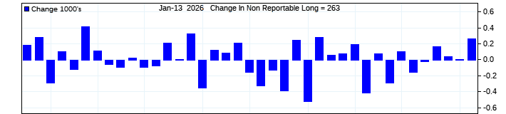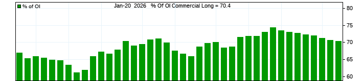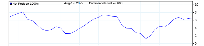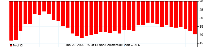 The top chart is fixed with the lower 3 panes available to show the various dataseries provided by the CFTC.