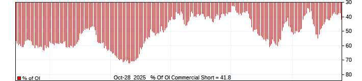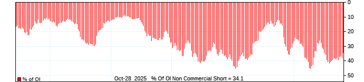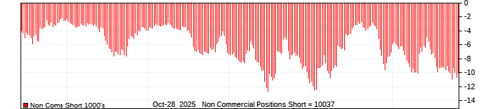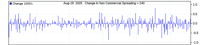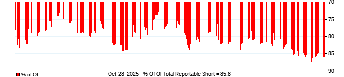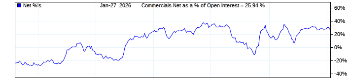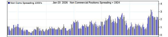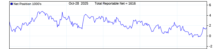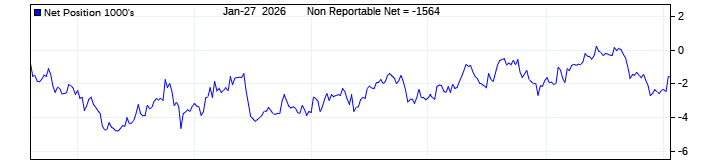 The top chart is fixed with the lower 3 panes available to show the various dataseries provided by the CFTC.