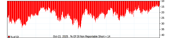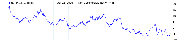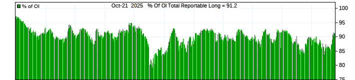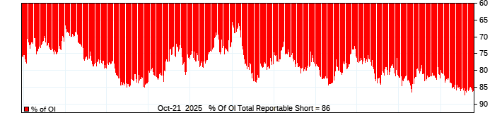The top chart is fixed with the lower 3 panes available to show the various dataseries provided by the CFTC.