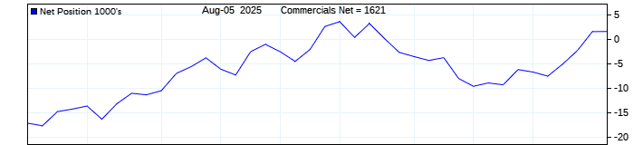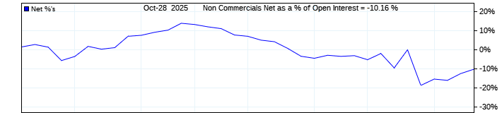 The top chart is fixed with the lower 3 panes available to show the various dataseries provided by the CFTC.